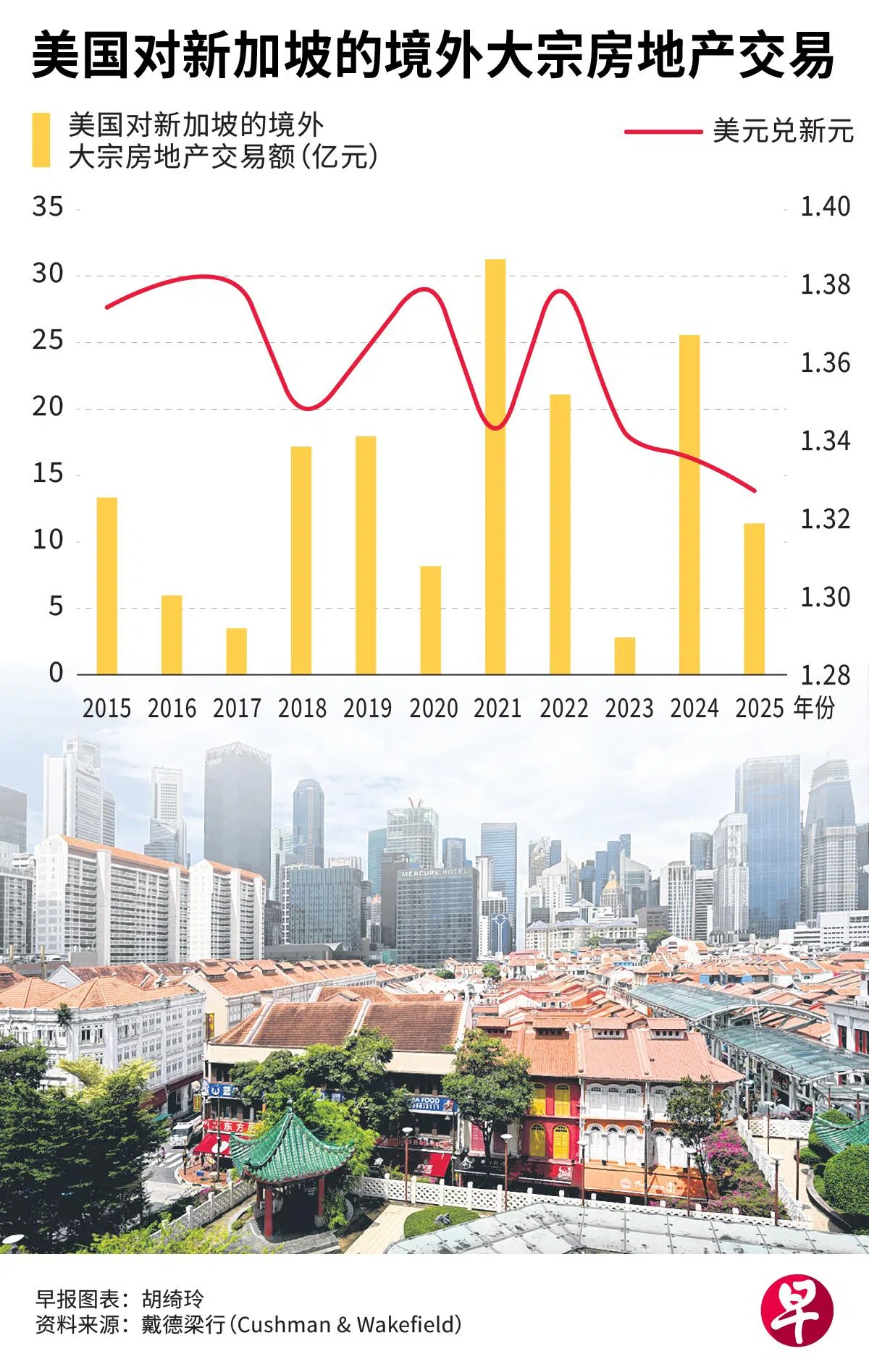 例如2021年,美元兑新元一度跌至近1.35的水平时,美国对新加坡的境外大宗房地产投资额却超过30亿新元;而在2023年美元汇率差不多在同一水平时,交易额却骤降至5亿以下。