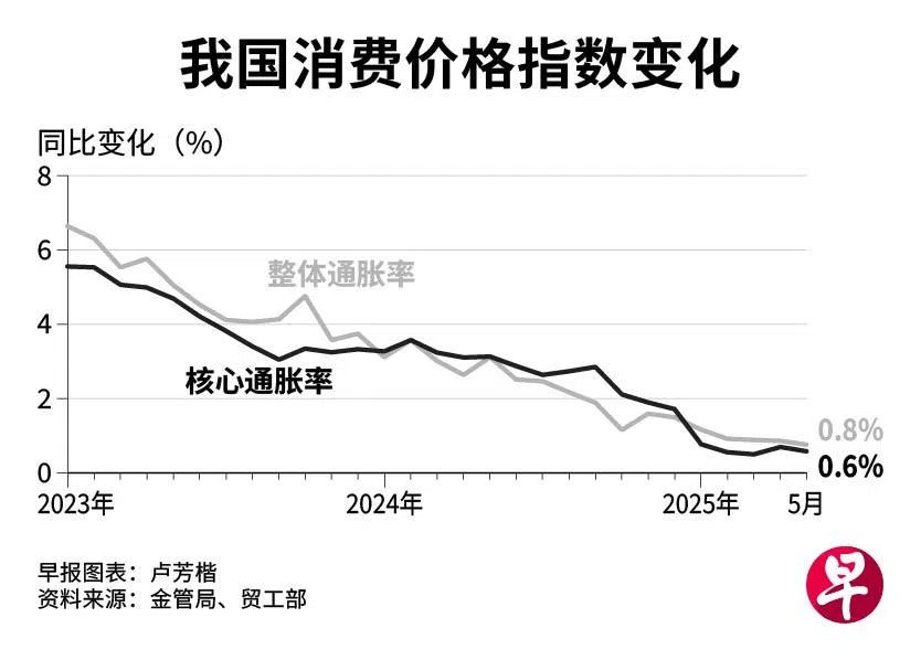 我国食品价格上涨速度放缓,推动5月份核心通货膨胀率下降至0.6%,略低于4月份的0.7%。