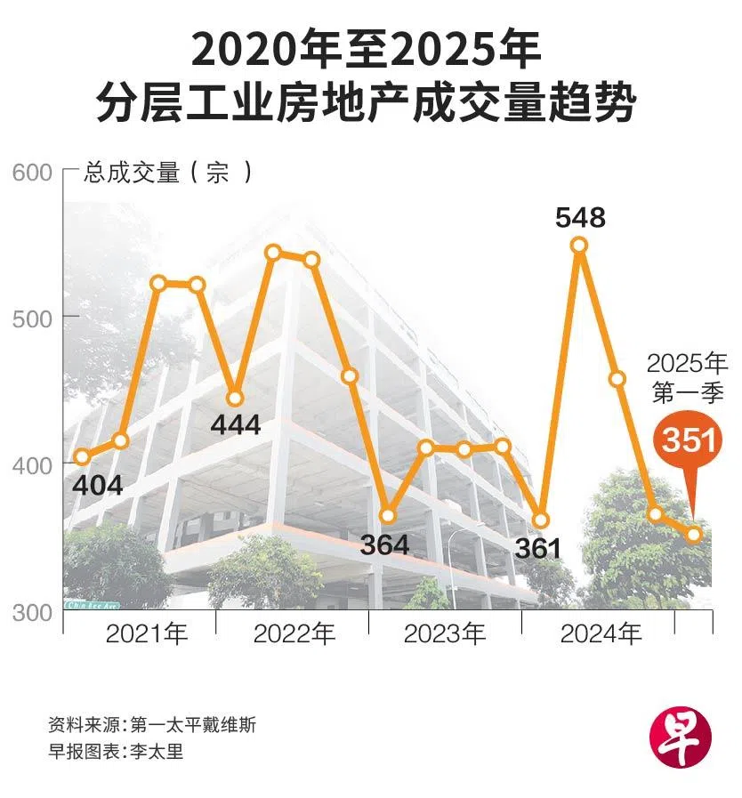 新加坡分层工业房地产2025年第一季度的销量跌至五年最低点,仅有351宗交易。这是因为全球经济不确定性加剧,企业面对供应链重组与营运成本上升,不少业者选择推迟扩张计划,导致市场整体观望情绪升温。