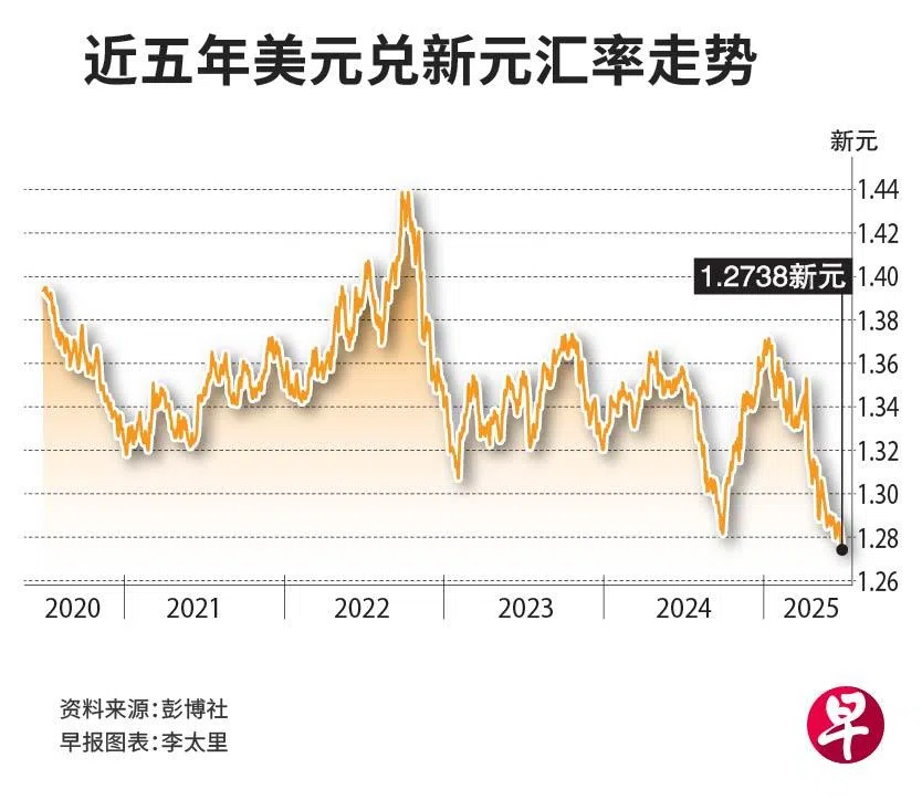 美国经济疲软的疑虑升温,加上美联储独立性受到侵蚀,美元正承受卖压,跌至近四年最低点,兑新元更跌至五年以来最低。受访专家认为,随着90天对等关税暂缓期接近尾声,美元可能会持续贬值。