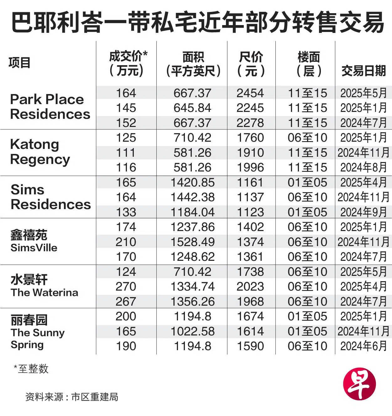 巴耶利峇私宅转售平均尺价10年涨逾50%