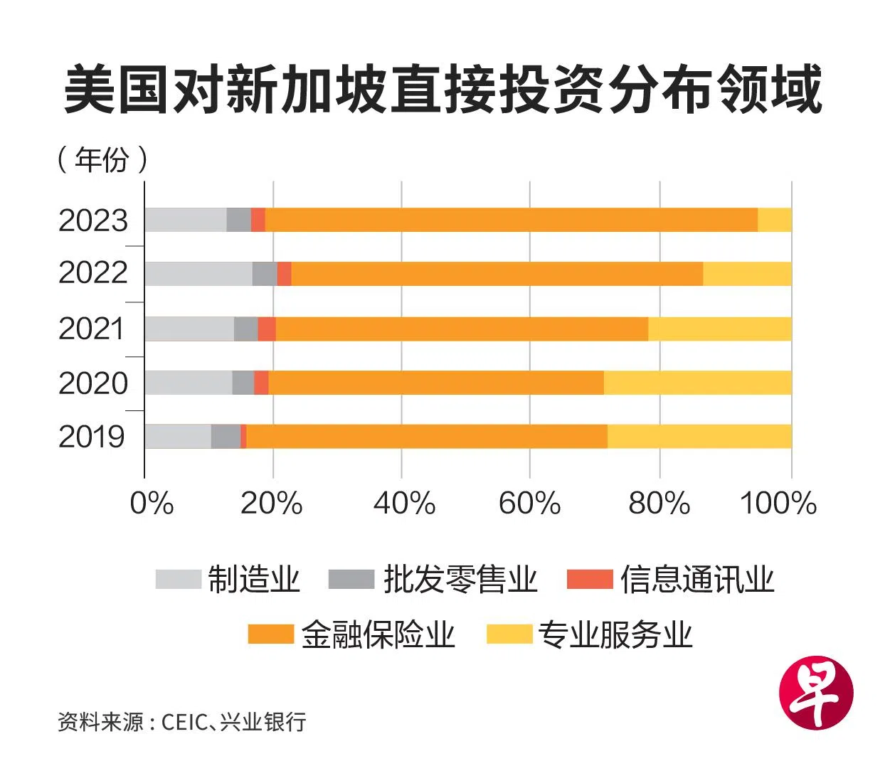 兴业银行报告指出,新加坡在亚细安地区吸引的外商直接投资(FDI)最高,几乎是区域其他国家的两倍。不过,由于美国投资占新加坡FDI的比率达23.6%,显著高于其他经济体,为我国制造业带来风险。