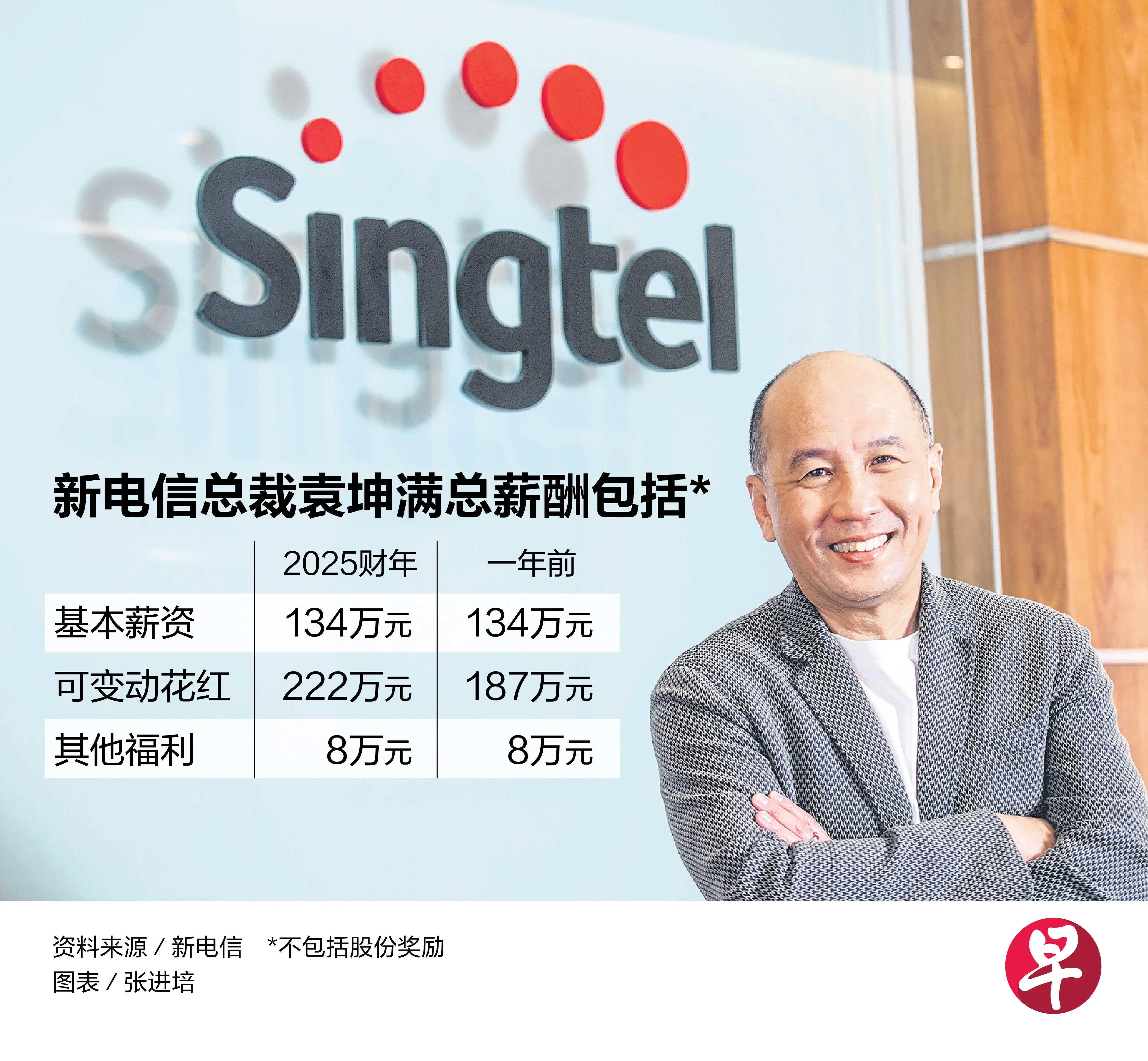 新电信星期一(6月30日)发布2025财年年报,袁坤满的总薪酬包括基本薪资、可变动花红、其他福利、限制性股票计划(Restricted Share Plan)的股票奖励和业绩奖励股份(Performance Share Scheme)。