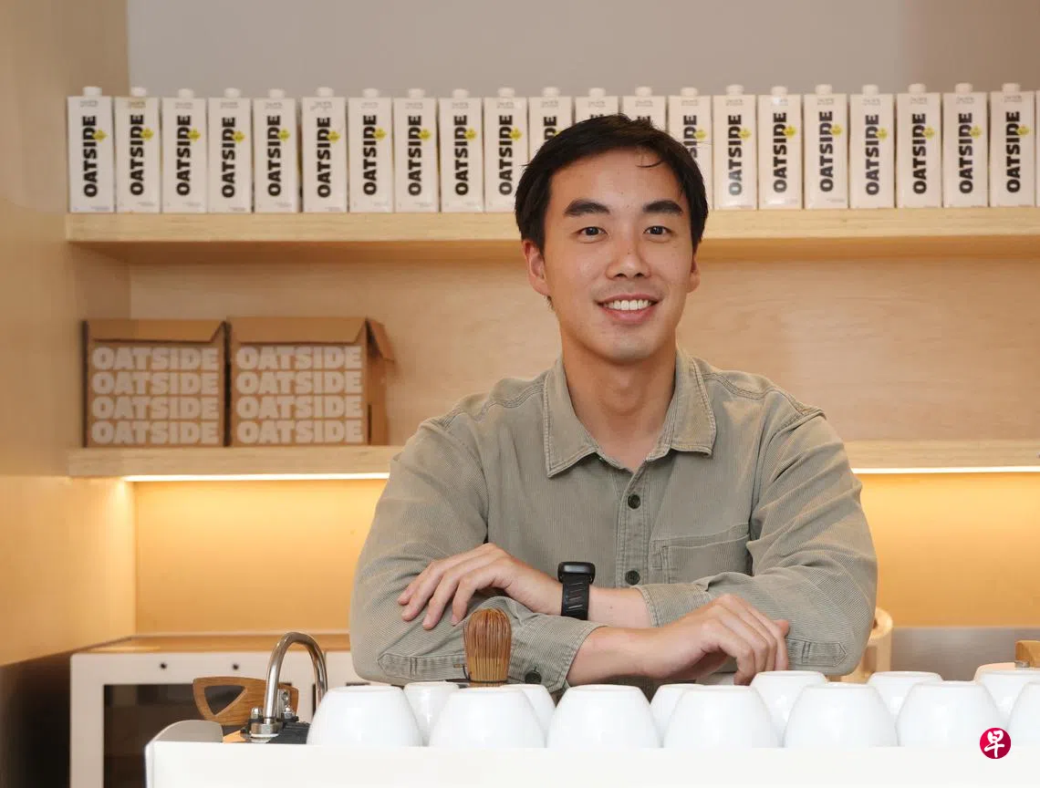 走进OATSIDE设在桥北路一处传统店屋的办公室,映入眼帘的就是吧台和专业咖啡机,墙上还摆着各式各样的燕麦奶产品,仿佛令人置身一间温馨的咖啡馆。公司创始人兼总裁林韦翰(34岁)一边打招呼,一边亲自冲泡燕麦奶调制的拿铁招待记者。