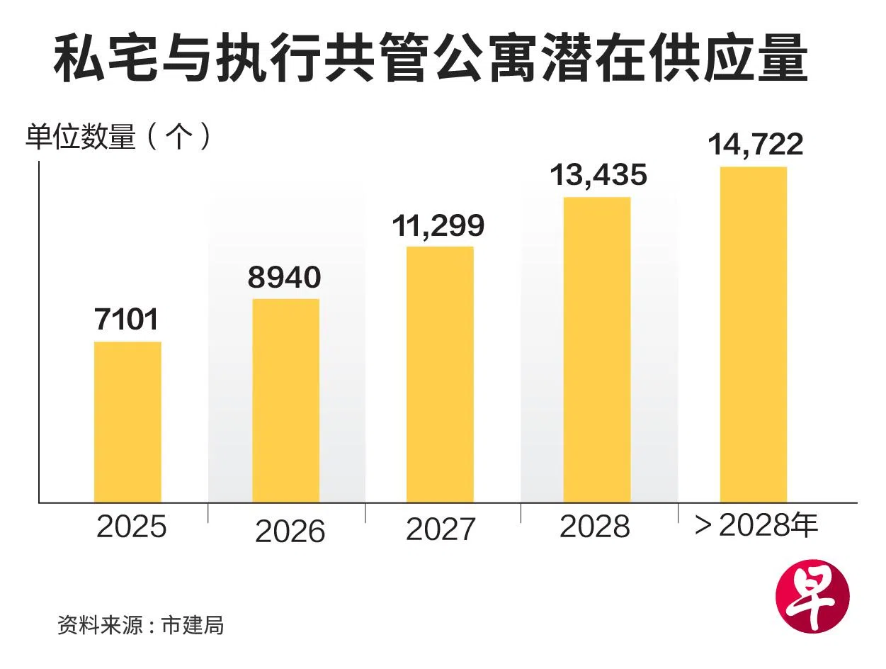 数据也显示,今年至2027年间将有约2万7300个私宅单位(包括执行共管公寓)竣工,2028年及之后预计还有约2万8200个单位完工,以满足市场的住房需求。
