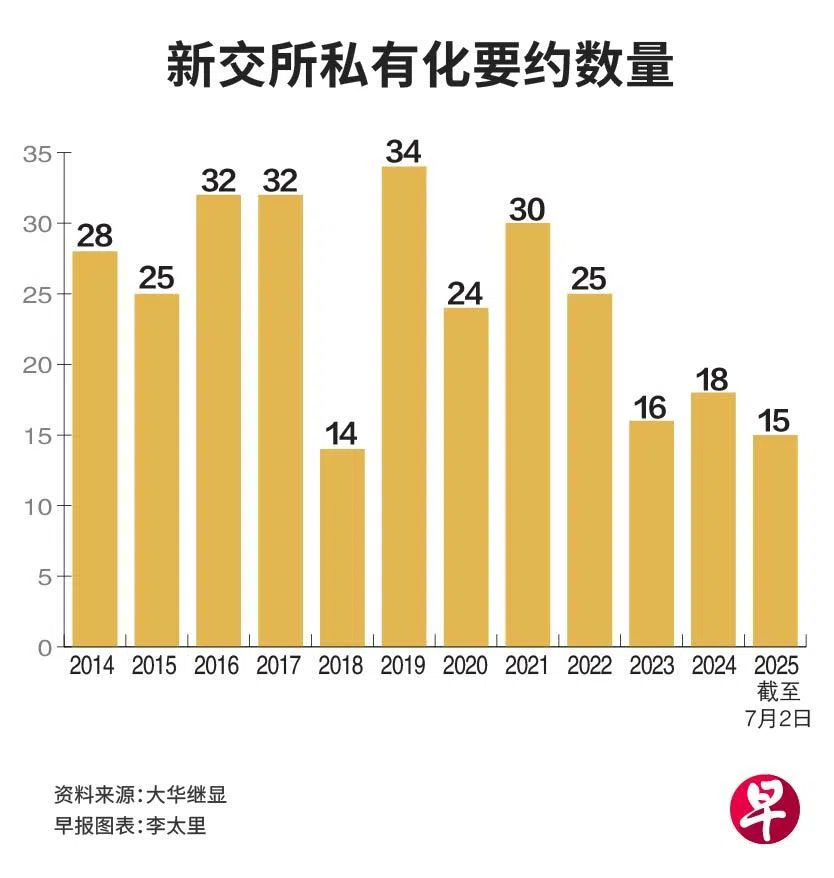 截至今年7月4日,已有15家公司发起了私有化要约,接近去年全年18宗的水平。过去12年,退市最高峰的时期是在2019年,当年出现34宗私有化要约。