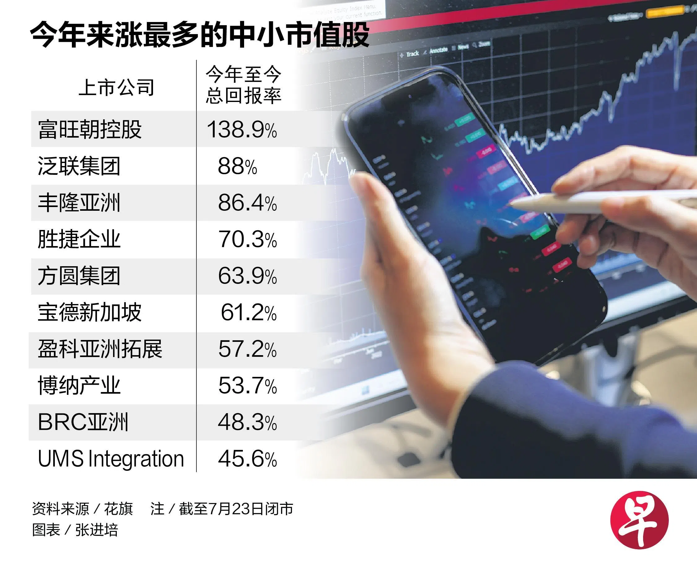 为强化新加坡股市的发展,我国今年初推出规模50亿元的证券市场发展计划。计划宣布以来,中小市值股纷纷得到散户投资者的追捧,股价水涨船高,表现优于许多大型蓝筹股。分析师提醒,不要盲目追逐,以免沦为“接盘侠”。