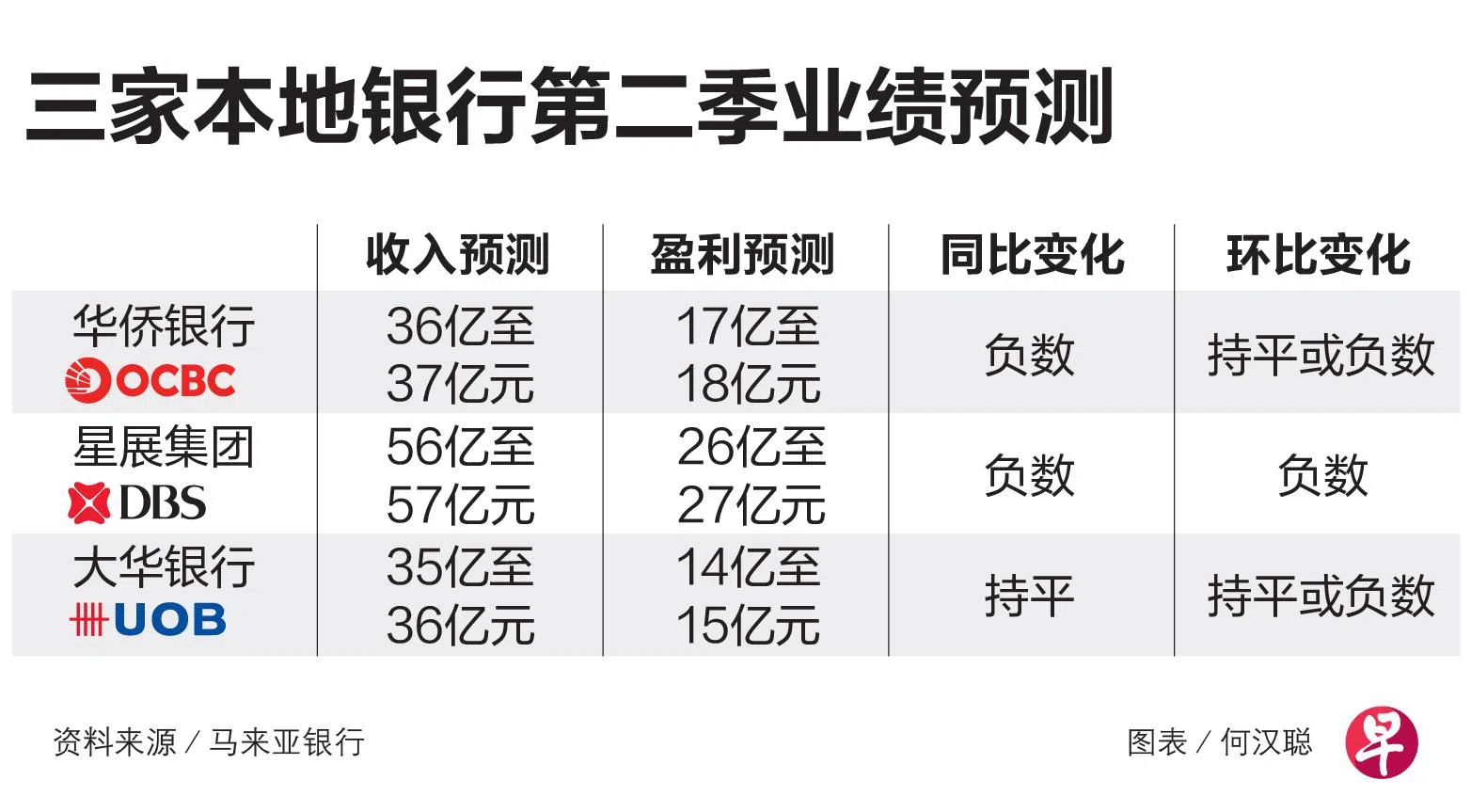 三家本地银行将在8月份发布今年第二季业务报告,华侨银行打头阵,在8月1日股市开市前发布,接着是星展集团和大华银行,同天在8月7日发布业绩。