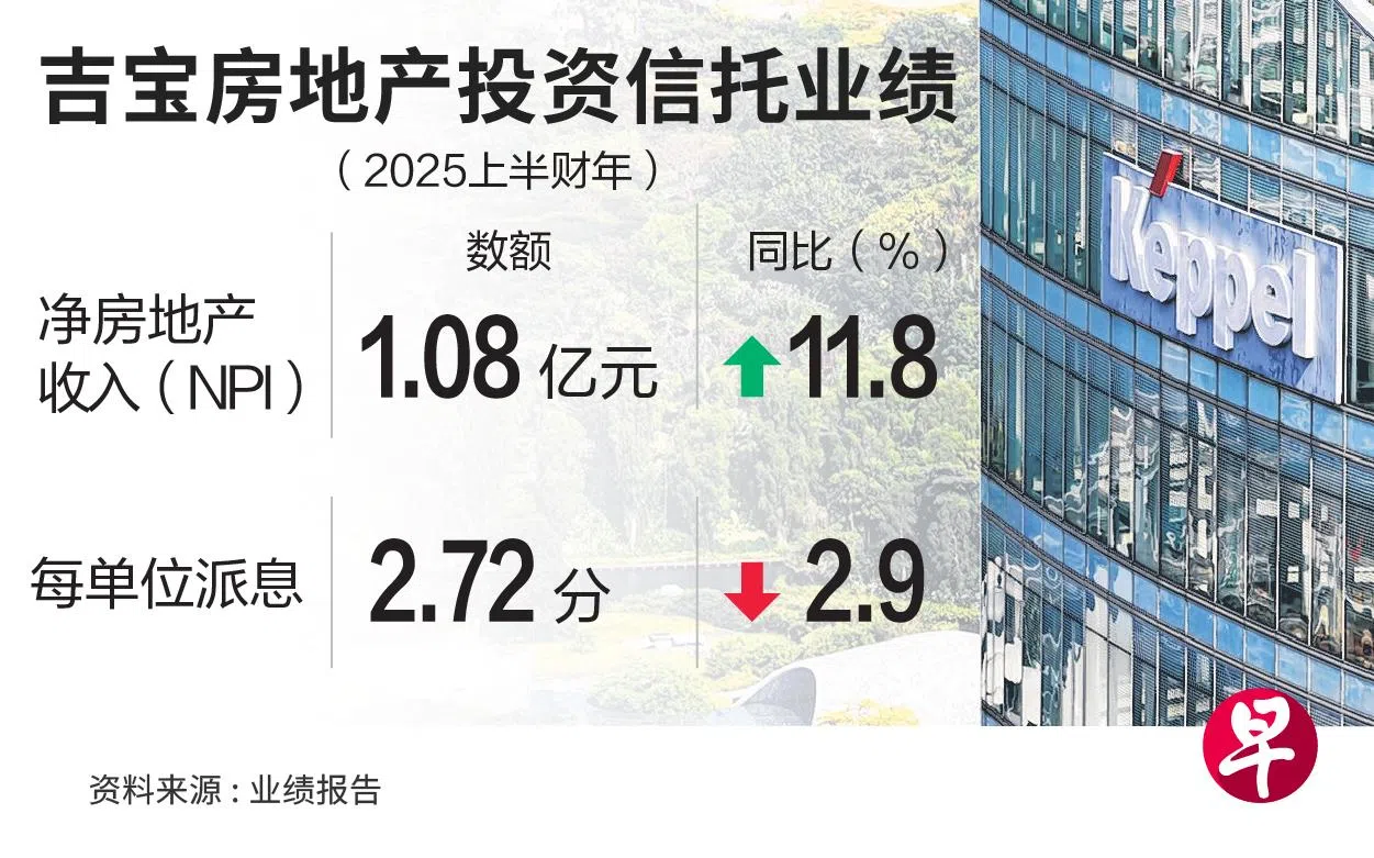 根据信托星期三(7月30日)发布的2025上半财年业绩,它截至6月底上半财年的净房地产收入(NPI)上扬11.8%至1亿零830万元,这主要是来自信托去年5月收购的澳大利亚悉尼甲级办公楼255 George Street收入贡献上扬,以及另一办公楼项目2 Blue Stree的租用率上扬。