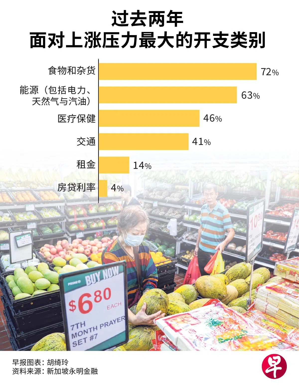 尽管今年来通货膨胀率有所回落,但过去几年的高通胀已显著推高物价,让高达90%的新加坡受访者感受到物价上涨的压力,其中42%更直言难以应付每月开销。