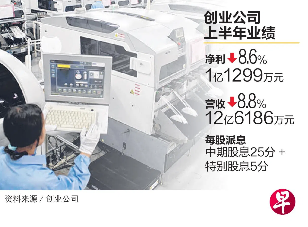 创业公司(Venture Corporation)2025年上半年集团净利为1亿1299万元,同比下跌8.6%;营收为12亿6186万元,同比下跌8.8%。