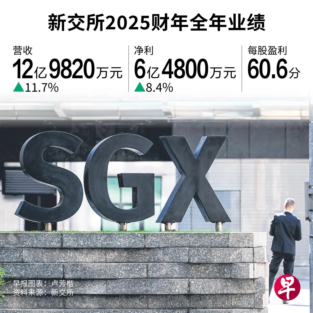 新加坡交易所(SGX)在2025财年取得净利6亿4800万元,比去年同期的5亿9800万元增长8.4%,这是自公司上市以来的最高营收和净利纪录。