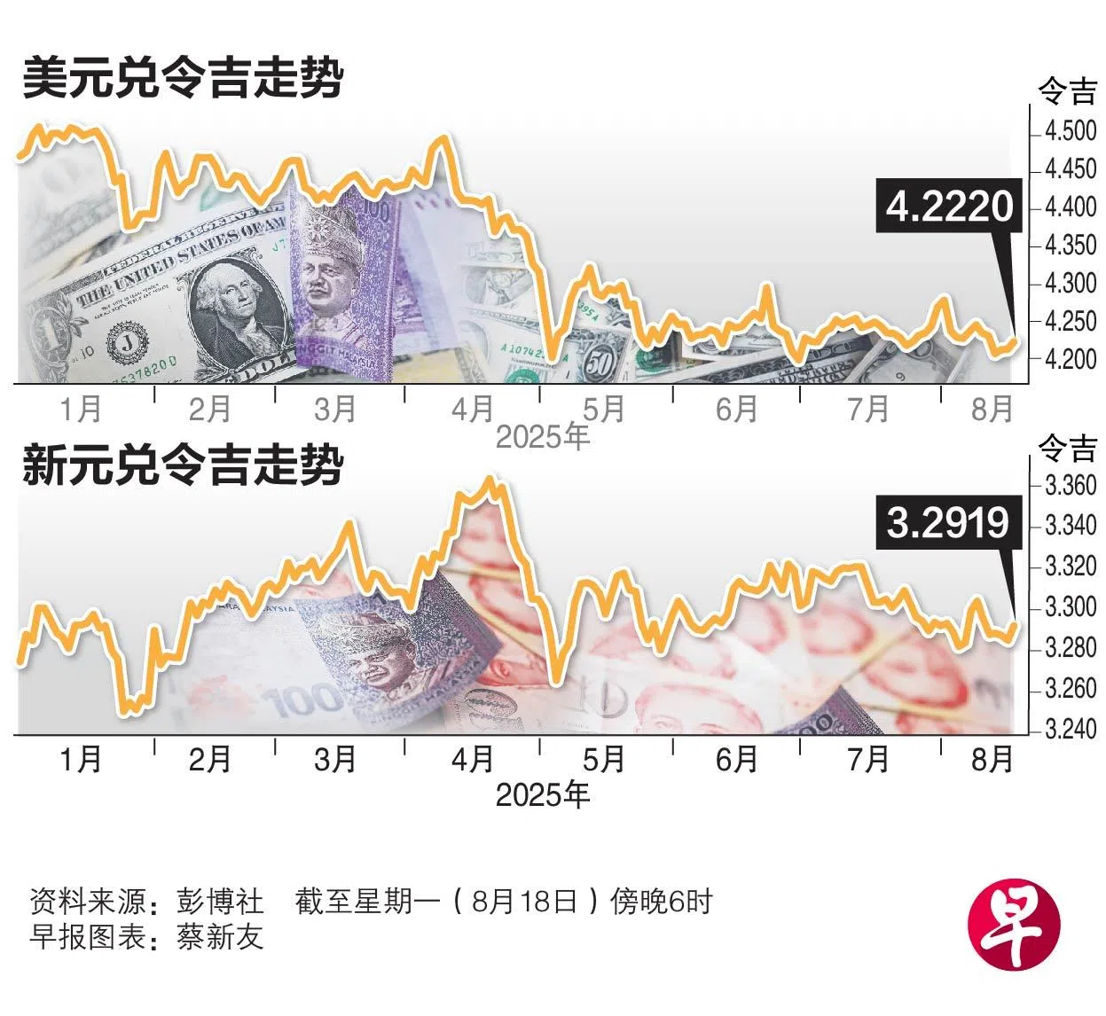 三菱日联银行(MUFG)资深货币分析师陈进来预料美元兑令吉今年底将达到4.15水平,华侨银行(OCBC)的预测是4.15,而马来亚银行(Maybank)的预测是4.1。截至星期一(8月18日)傍晚6时,美元兑令吉处于4.22左右。