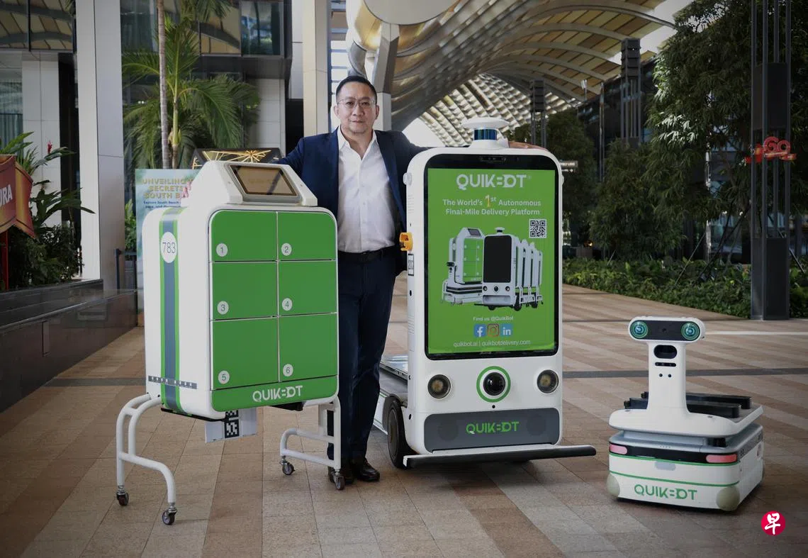 这是新加坡科技初创公司快客宝科技(QuikBot Technologies)首创的“无人智能终端配送平台”正在执行配送任务,目的是利用机器人、人工智能与物联网技术,解决“最后一里”的配送难题。