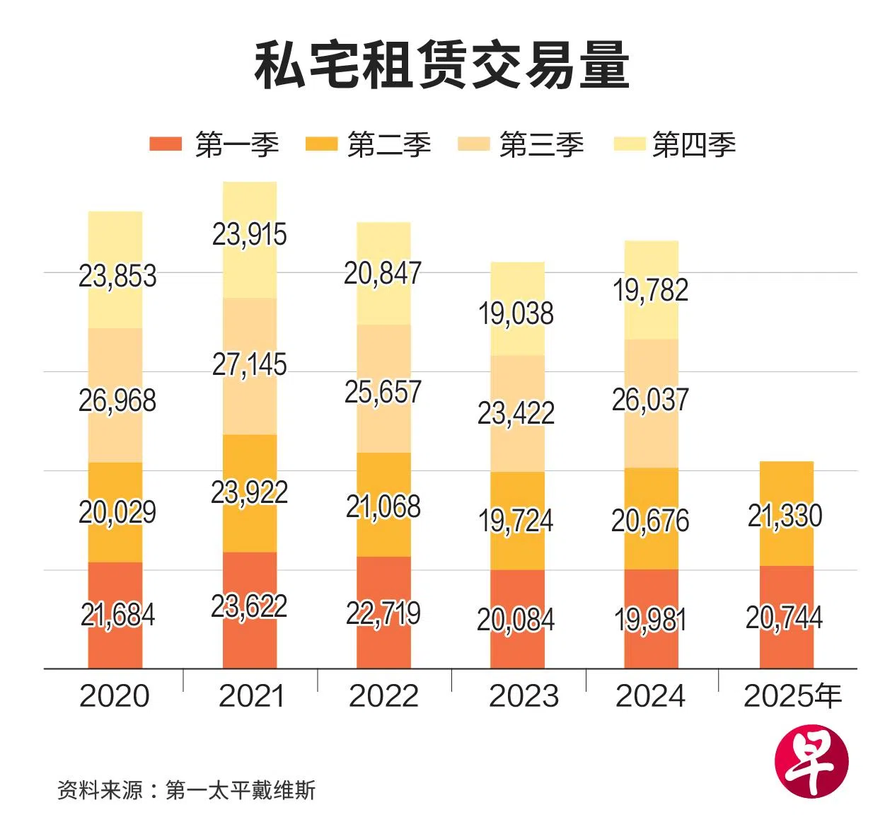 本地私宅租赁市场保持活跃,今年第二季整体租赁交易量和非有地私宅租金连续两个季度攀升,分别取得2.8%和0.8%环比增幅。分析指出,下来的可供出租单位数量将进一步增加,但受屋主须缴纳更高房地产税影响,今年全年私宅租金料难出现大幅下滑情况。