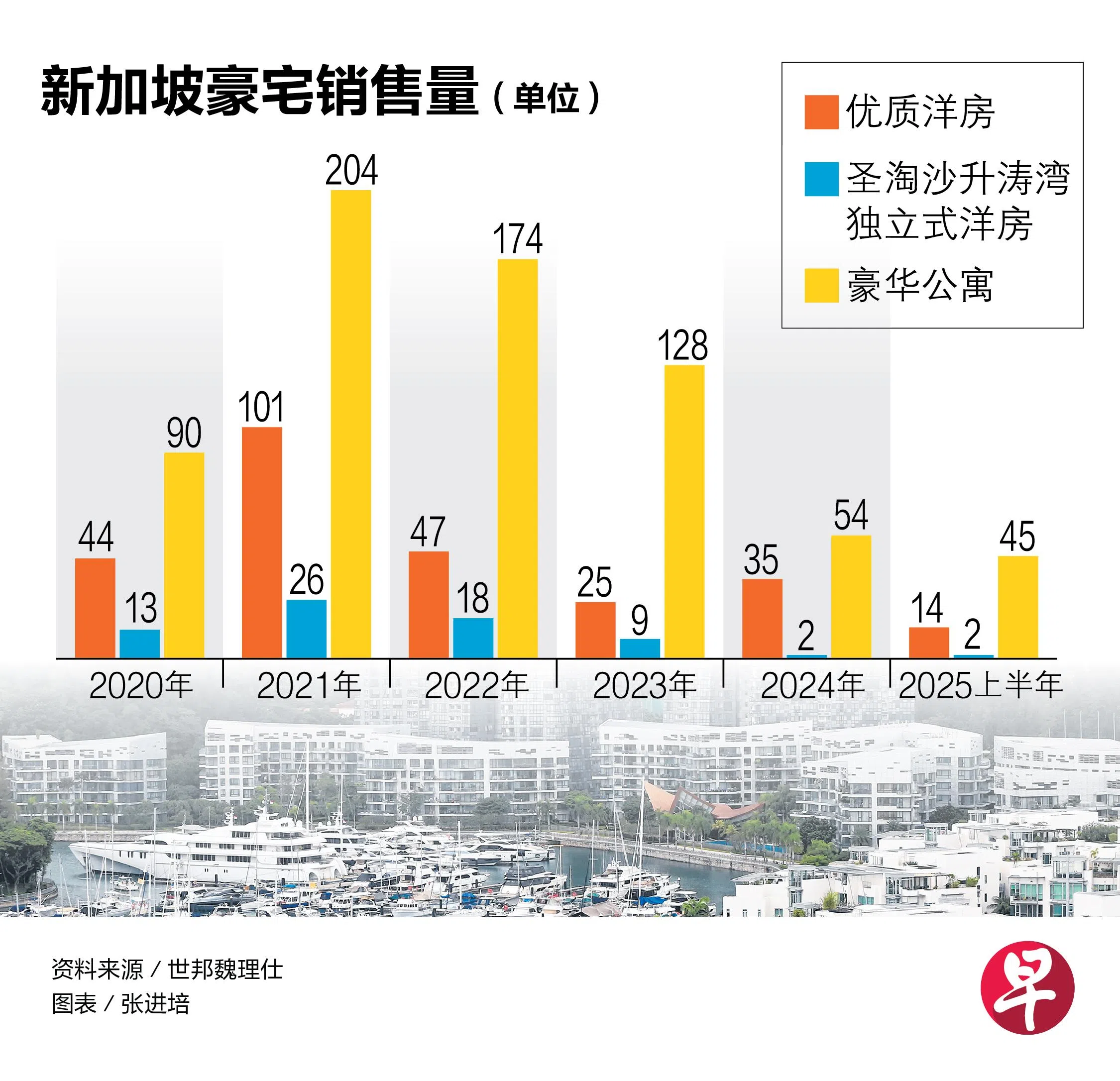 新盘推出及利率下调带动新加坡豪宅市场回暖,今年上半年总交易额同比增长53.9%,达5亿8426万元。成交量为45个单位,比去年同期的34个单位来得多。