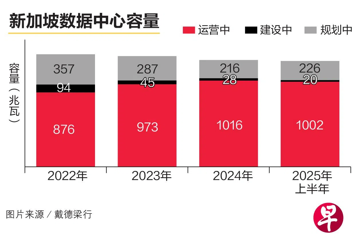 由于新发展项目受限,新加坡的数据中心发展活动依旧低迷。数据显示,今年上半年,我国运营中的数据中心容量为1002兆瓦(MW),比去年同期的1016兆瓦略有下降。