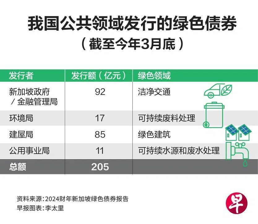 财政部指出,这些公共部门发行的绿色债券,通过为企业绿色债券市场提供基准、加深绿色债券的市场流动性,以及吸引绿色债券发行人、资金和投资者,来推动新加坡高质量绿色债券市场的发展。