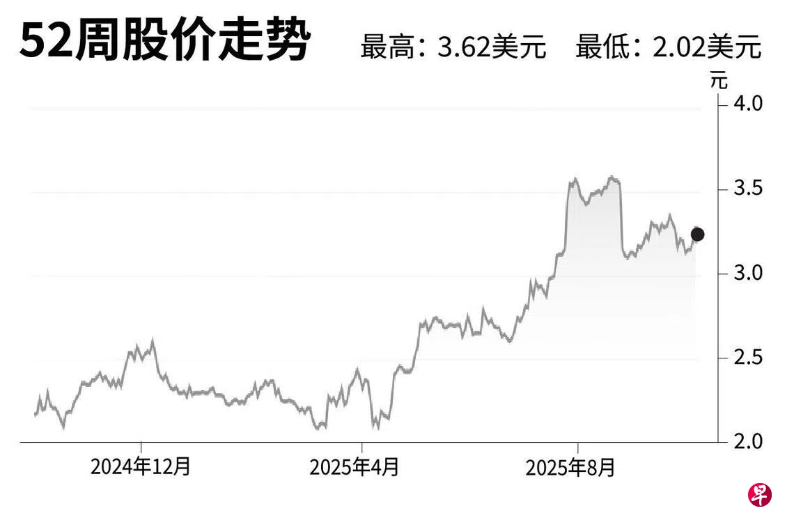 闭市价:3.26美元(1.24%)