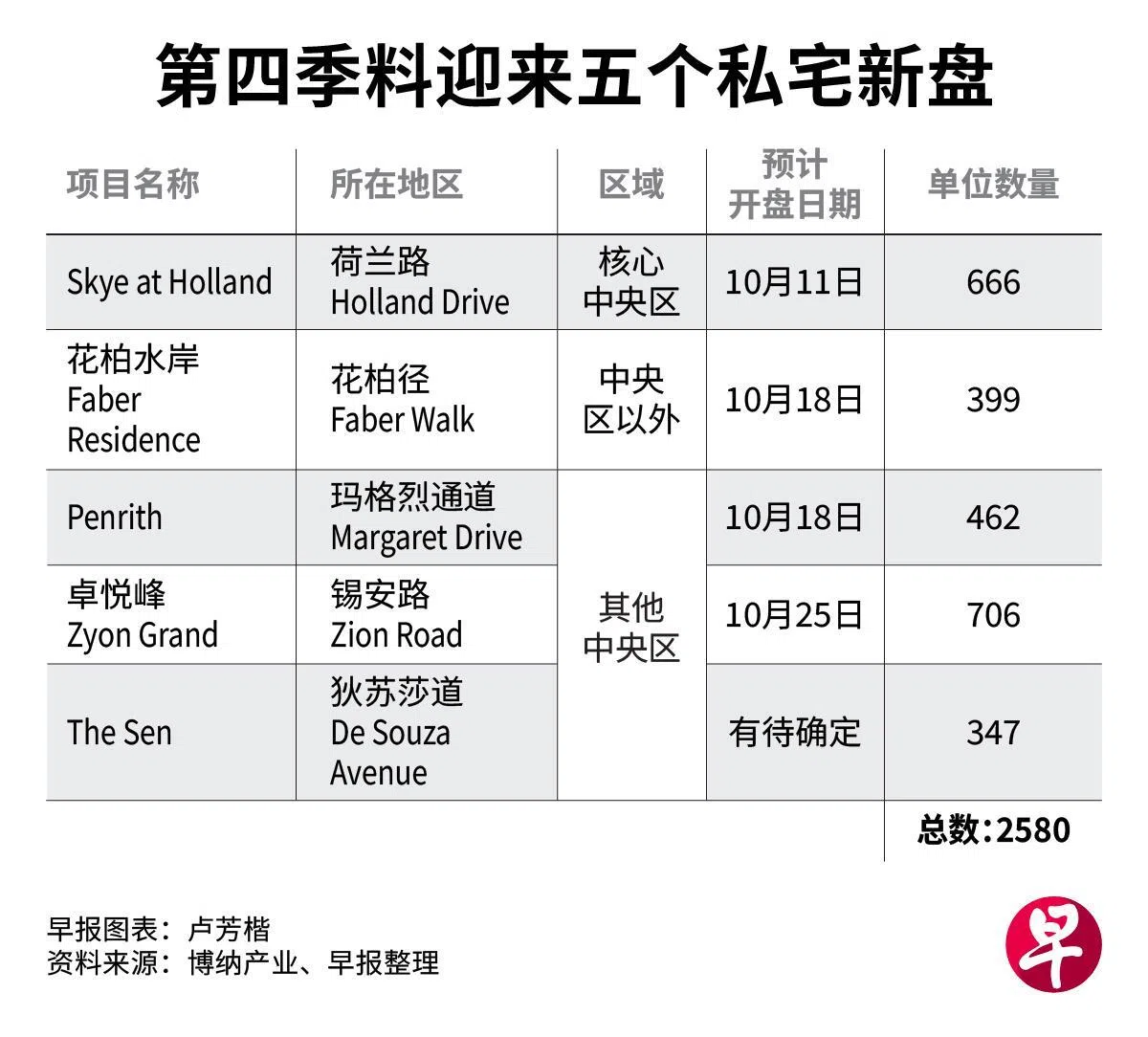 今年最后三个月,预计有2580个新私宅单位推出市场,超过一半是中档私宅。受访分析师认为,鉴于这些项目的定位和目标买家群体不同,预期发展商不会打“价格战”来吸引买家,中档私宅价格料保持坚挺。