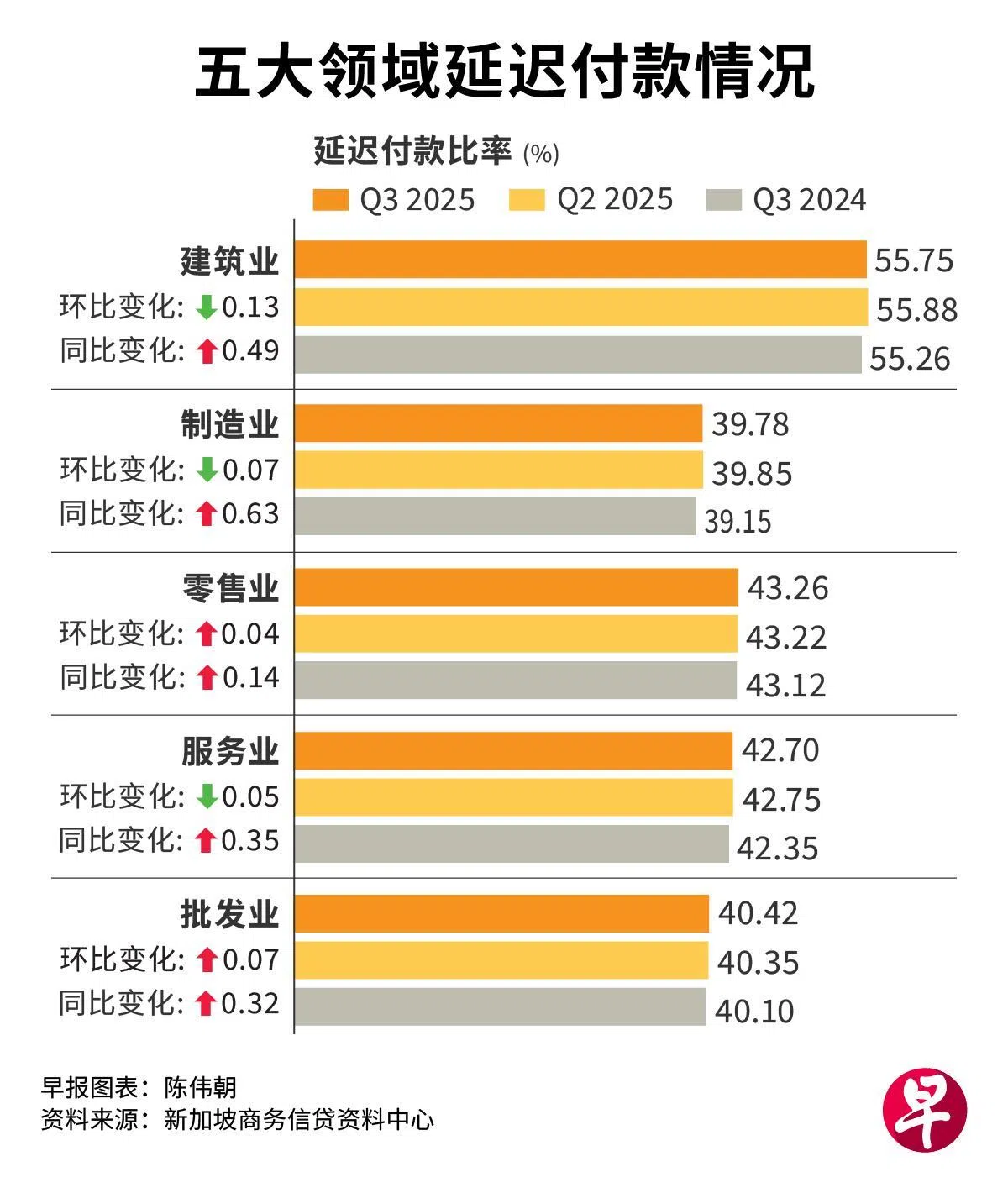 新加坡商务信贷资料中心(Singapore Commercial Credit Bureau)星期一(10月6日)公布的第三季企业支付趋势报告显示,与第二季相比,按时付款的企业微跌0.04个百分点至41.06%;延迟付款的情况则增加0.05个百分点,达44.46%,而部分付款的情况则下降0.02个百分点至14.48%。