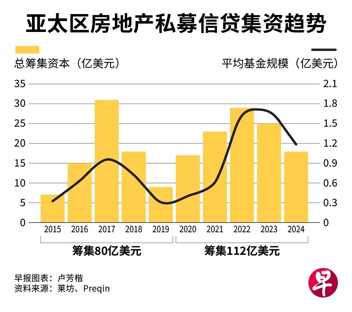 在投资者对房地产这一资产类别兴趣普遍回暖的背景下,亚太区的房地产私募信贷市场增长迅速。2020年至2024年间,这领域的融资总额达到112亿美元(144亿新元),相比前五年增长了40%,彰显本区域在另类贷款领域日益增强的影响力和重要性。