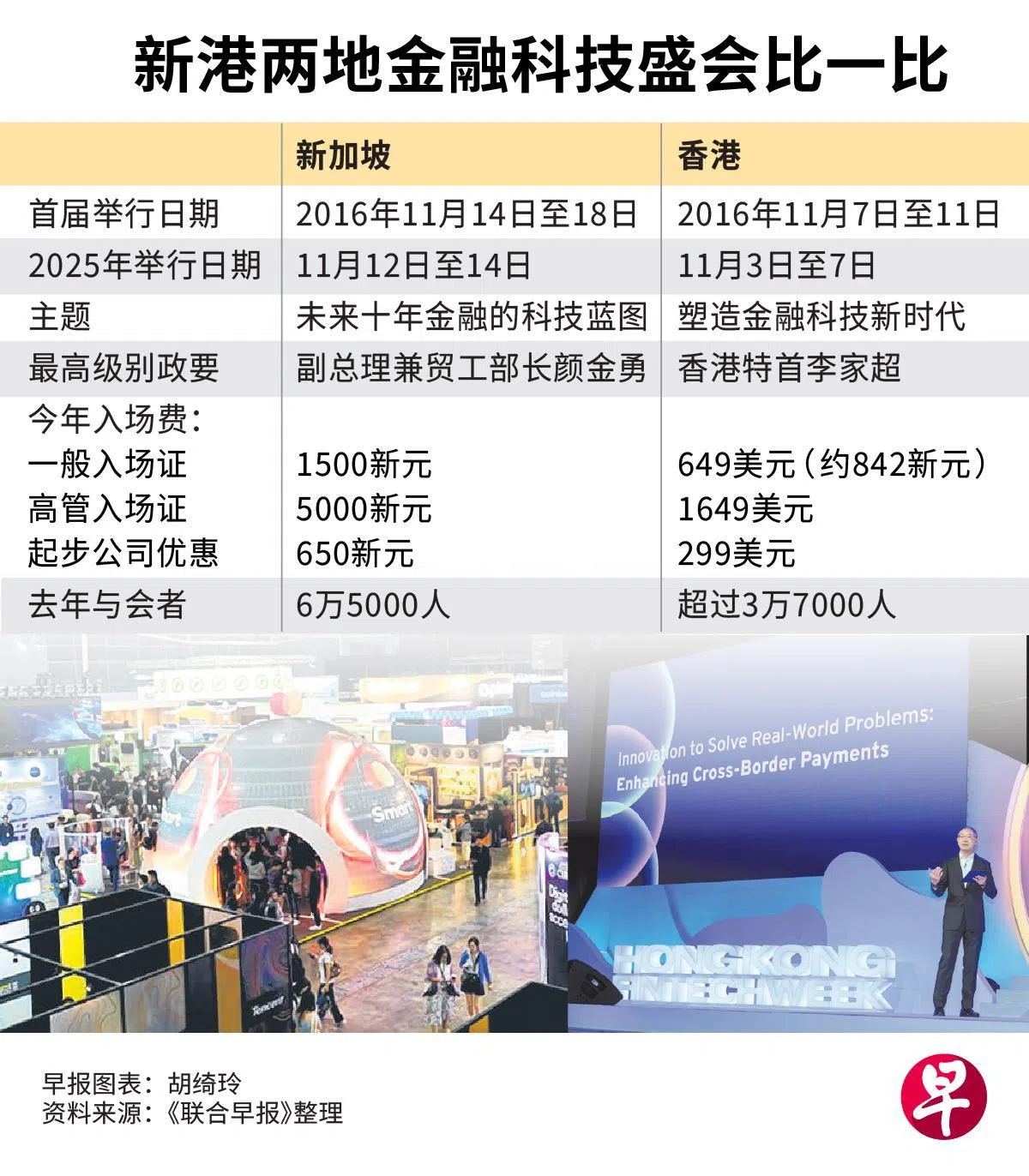 去年和今年都参加两地活动的全球贸易支付公司XTransfer创始人兼首席执行官邓国标接受《联合早报》访问时说,新加坡的展会规模比香港的大,两者都涵盖广泛的金融科技主题,但香港金融科技周更侧重粤港澳大湾区和中国内地的影响力,而新加坡金融科技节则更关注亚细安地区市场。