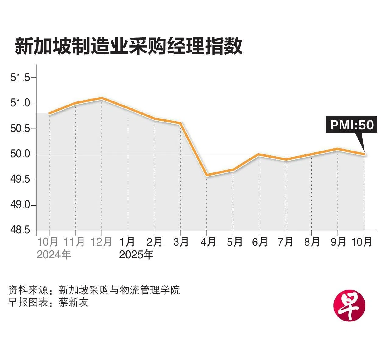 我国10月制造业采购经理指数(PMI)环比下滑0.1点至50,连续第三个月处于扩张区间。经济师认为,尽管未来几个月仍存在不确定性,但我国制造业依然受到人工智能相关需求增长及电子业表现稳健的支撑。