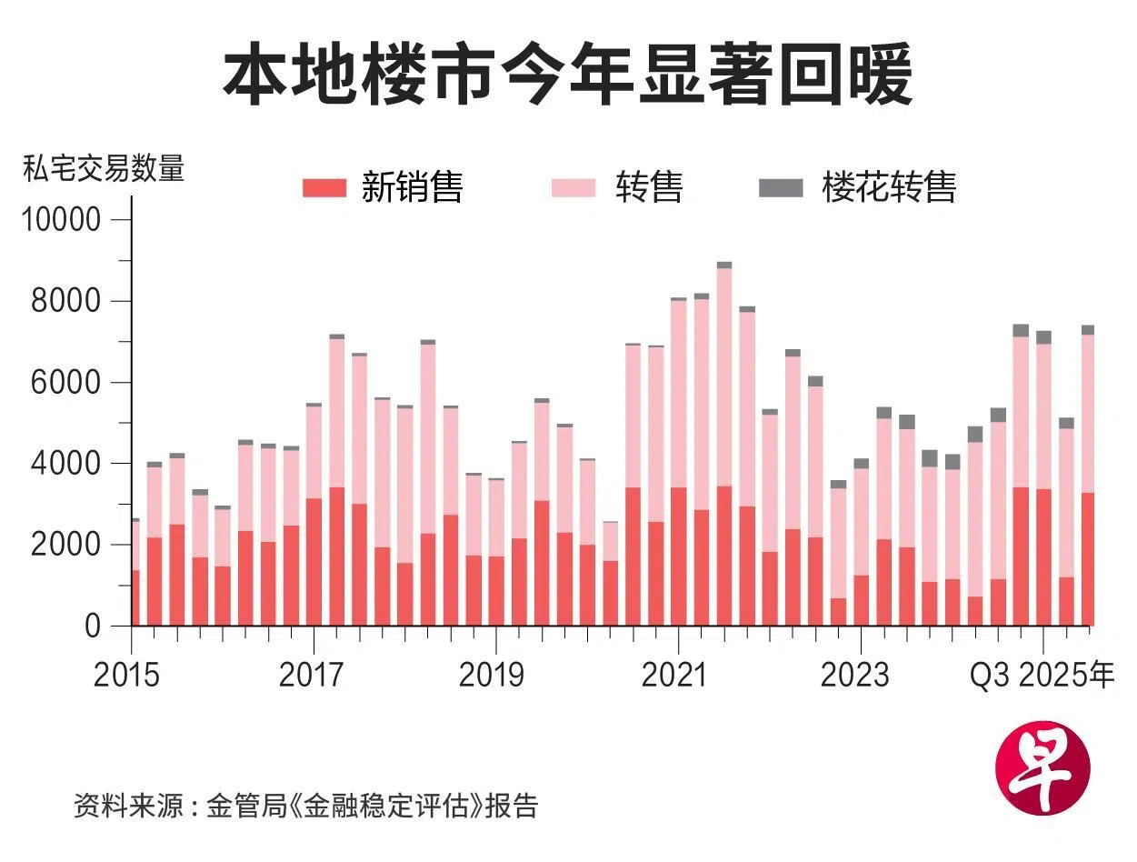 金管局注意到,在新项目销售复苏和转售市场稳定的背景下,私宅市场今年前三季的平均每季交易量,已超越过去三年的平均水平。