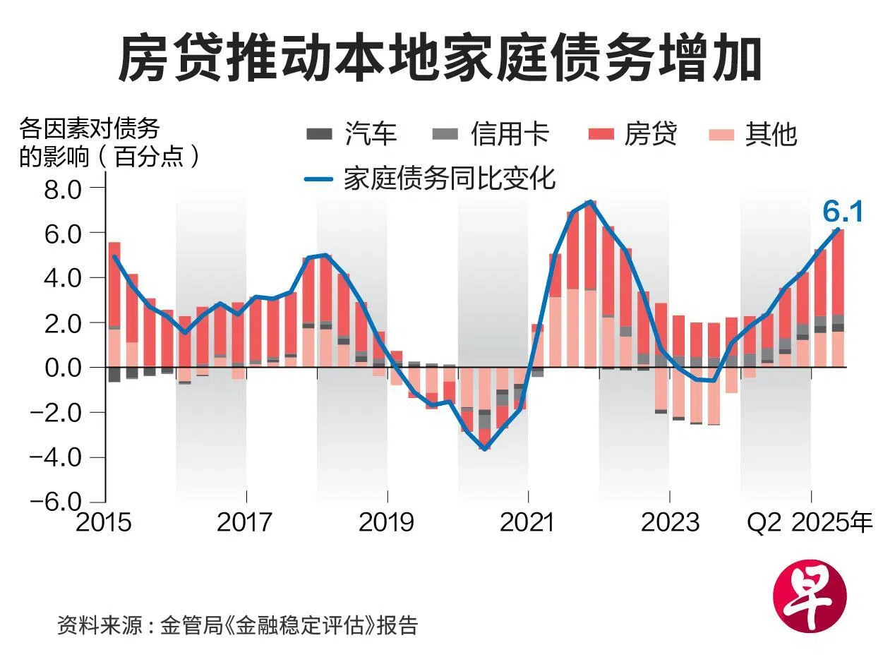 报告指出,家庭债务增长主要由房贷推动,这与本地房地产市场回暖的趋势保持一致。