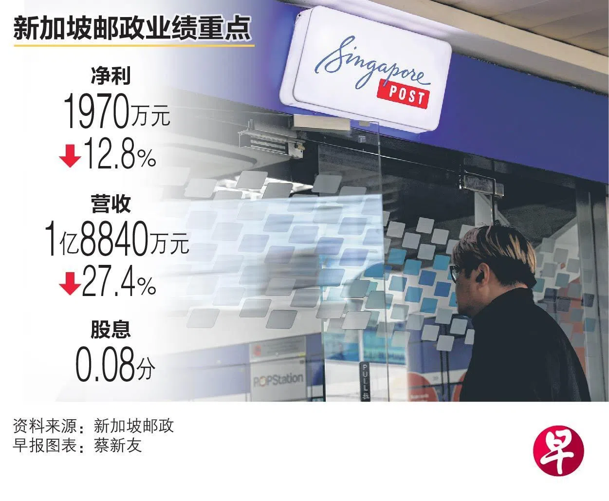 由于缺乏早前出售的澳大利亚业务所带来的贡献,加上跨境业务收入有所减少,新加坡邮政(Singapore Post)在截止9月底的本财政年上半年,净利同比下滑12.8%至1970万元。