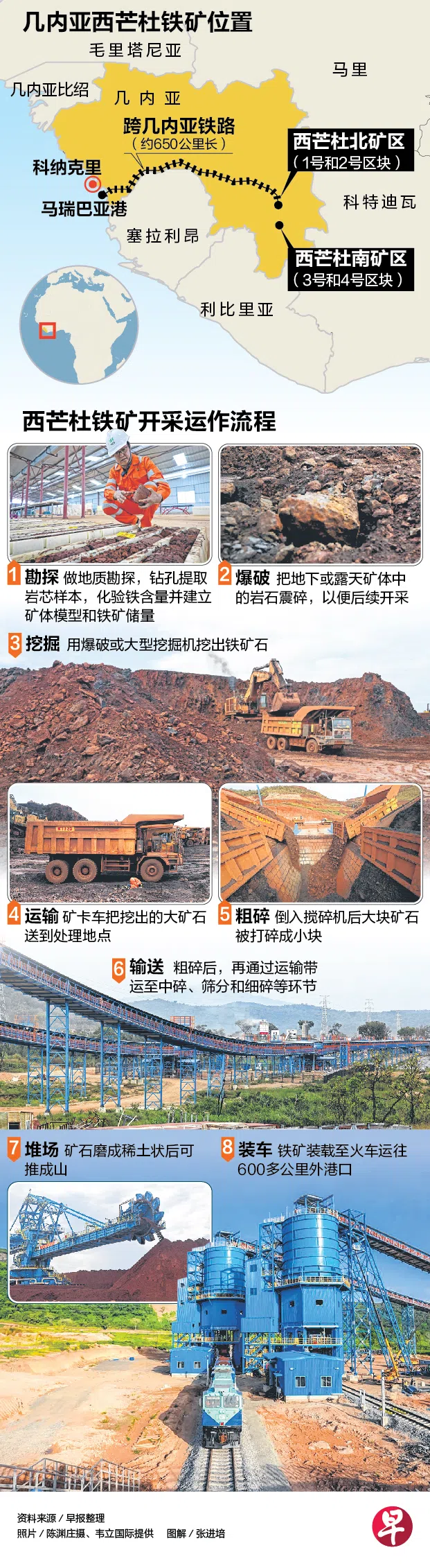 此前,西芒杜铁矿的建设相当有挑战性。除了政治不确定性因素外,项目整体开发成本达232亿美元,因西芒杜地处几内亚内陆,必须新建一条长约650公里的跨几内亚重载铁路,联通到靠近几内亚首都科纳克里的新港口马瑞巴亚(Morebaya),铁路长度相当于新加坡到马来西亚槟城。