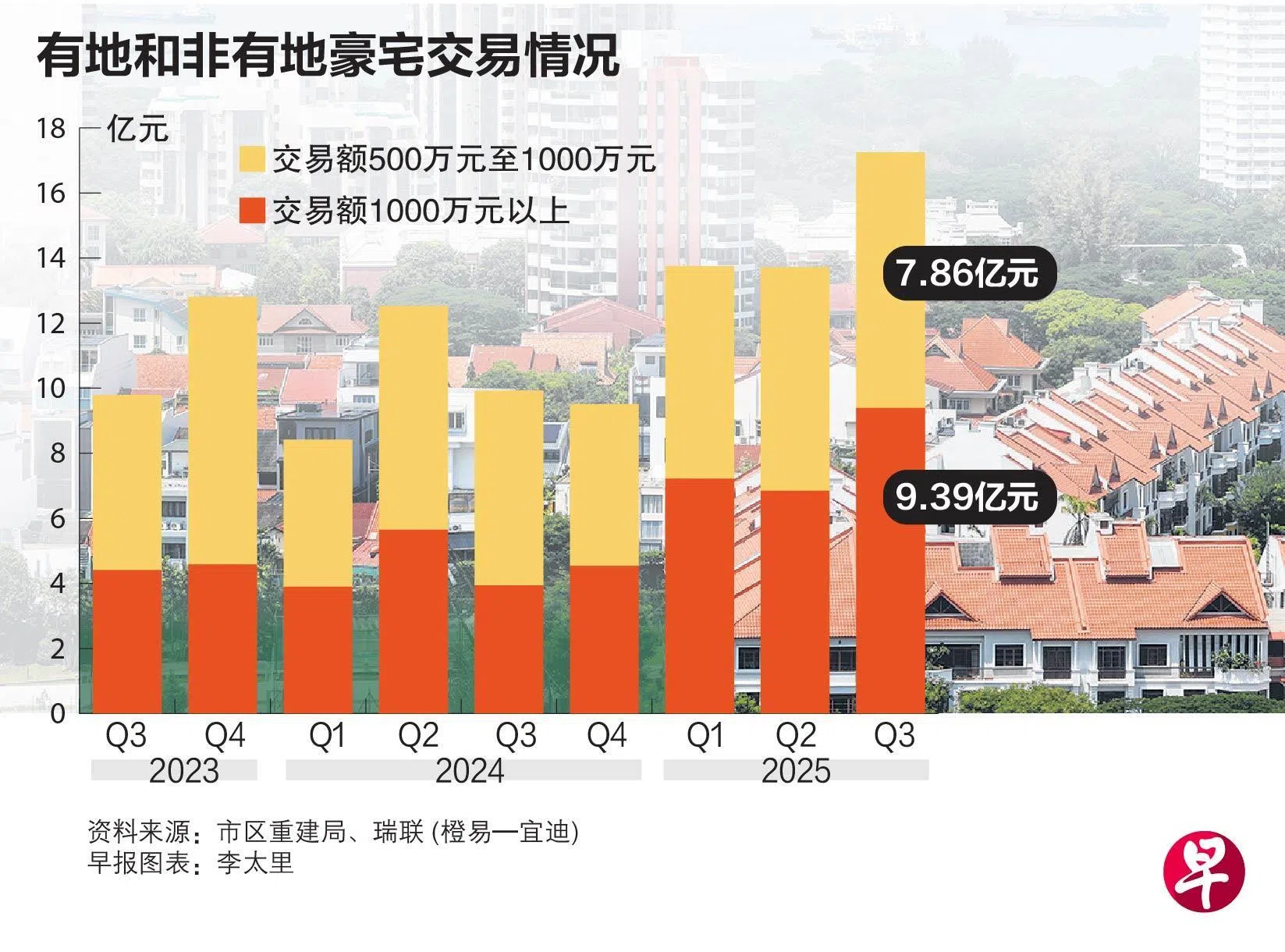 新加坡富豪买房不手软,今年第三季有171套豪宅售出,总交易额同比大涨73.7%至17亿2500万元。