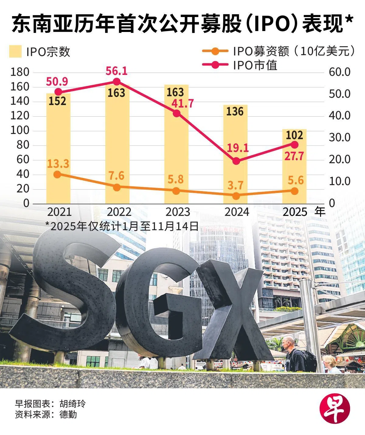 德勤(Deloitte)星期二(11月18日)发布的最新东南亚首次公开售股(IPO)报告指出,募资规模增长主要受更大规模交易、行业结构变化,以及新加坡、越南、马来西亚和印度尼西亚市场表现强劲所推动。