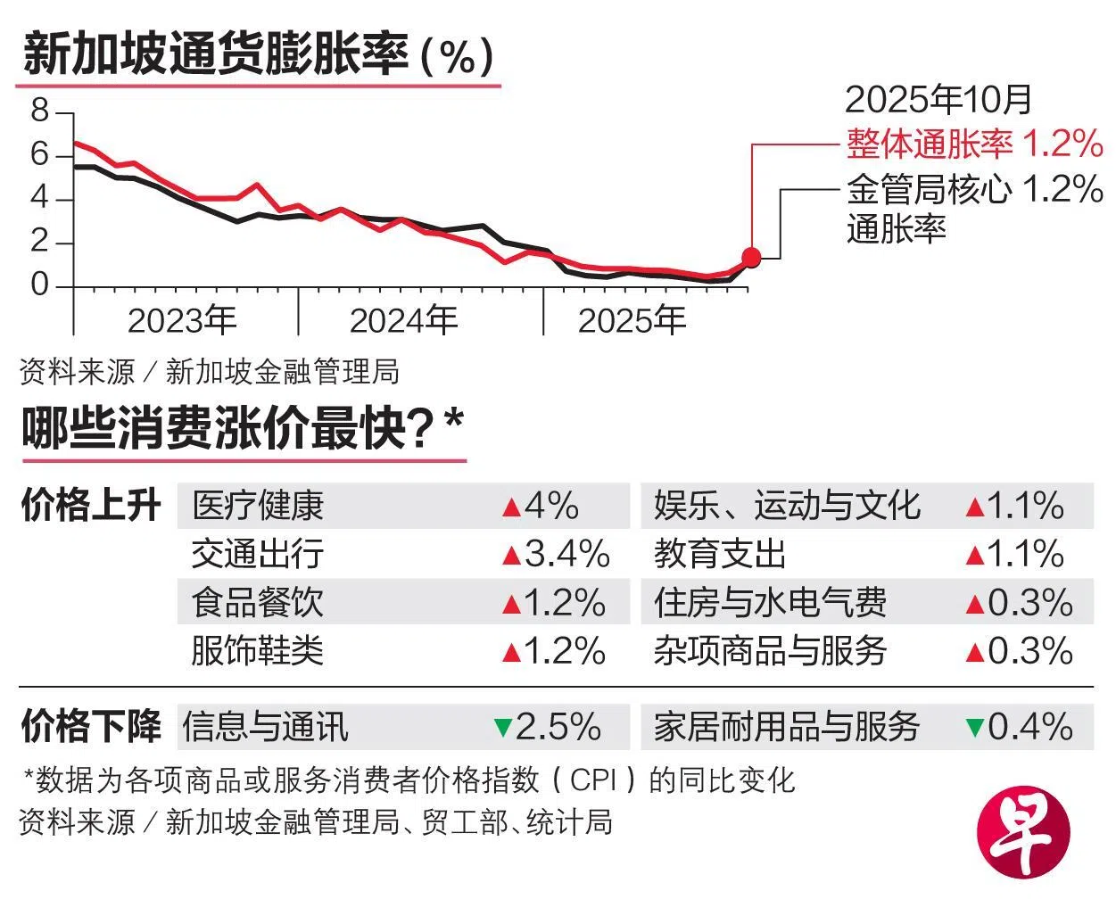 蔡学敏还说,部分行政服务未来几个月价格或有所上涨,例如巴士票价在12月27日涨价约5%。此外,2026年会实施更高碳税,以及对机票征收新的可持续燃料税等,也会继续支撑通胀。