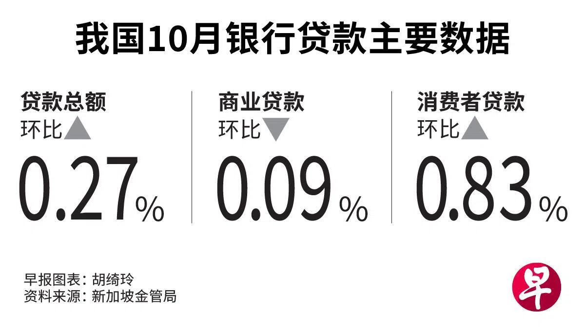 新加坡金融管理局(MAS)星期五(11月28日)公布10月份银行贷款预估数据显示,占贷款总额约六成的商业贷款达到5236亿元,比9月减少0.09%,同比则增6.48%。