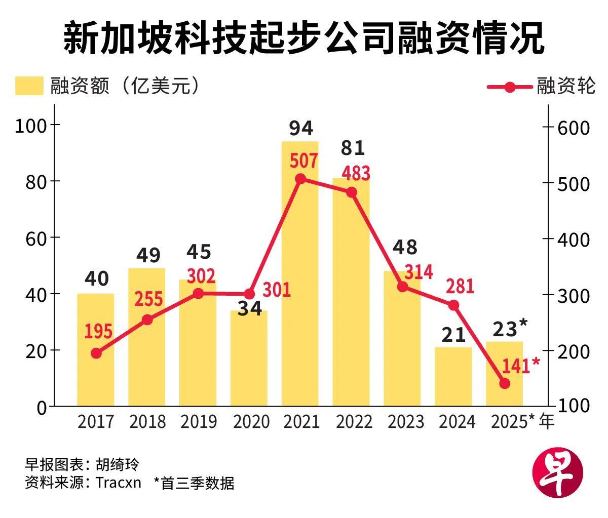 根据创业研究机构Tracxn提供的数据,新加坡科技起步公司今年首三季完成141轮融资,总融资额达23亿美元(29亿8000万新元)。尽管融资笔数比去年全年的281轮减少近半,但总融资额却比去年全年的21亿美元高出9.5%。