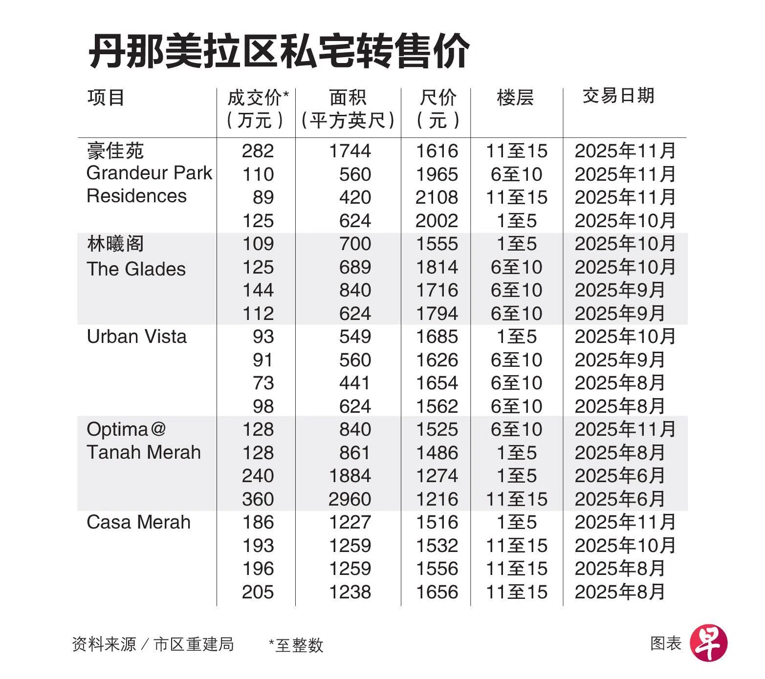 在今年7月至10月之间,位于丹那美拉克基区(Tanah Merah Kechil)的Urban Vista和Casa Merah的交易量同为八笔;Optima@Tanah Merah则只有四笔,表现不如豪佳苑和林曦阁。在同个期间,豪佳苑和林曦阁的交易量分别为13笔和20笔。