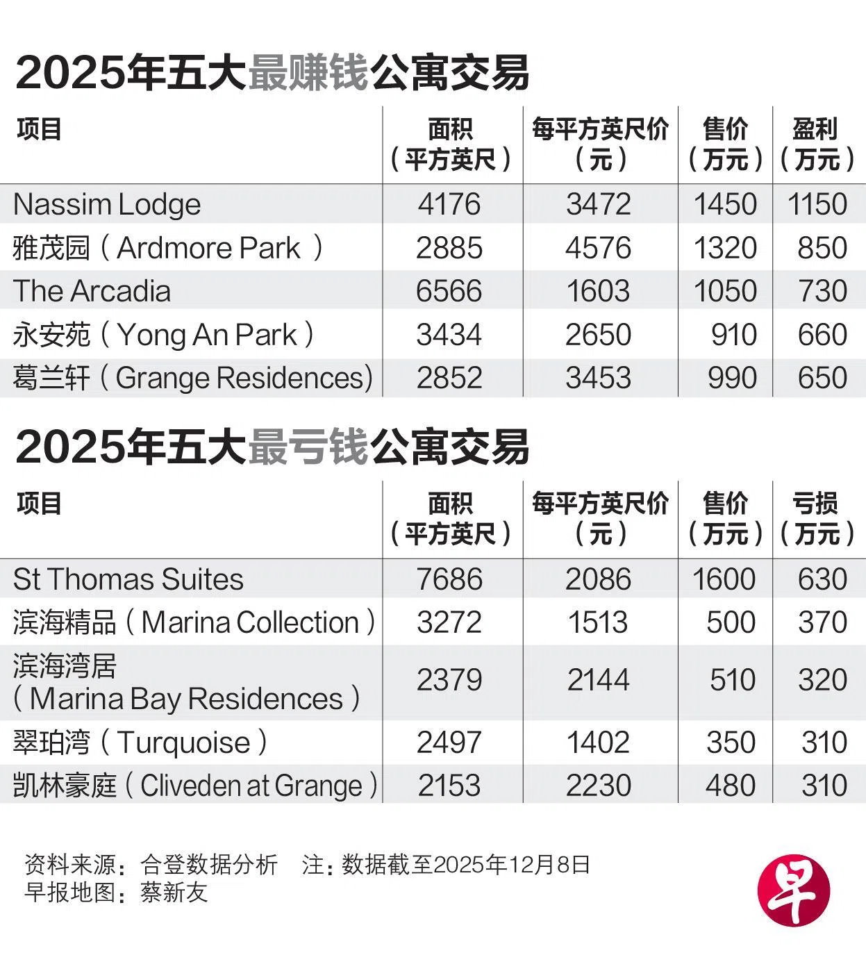 叶润明说:“虽然最赚钱的公寓交易集中在核心中央区,但区内同样出现了最大亏损的交易。例如,乌节路附近的St Thomas Suites今年就出现一宗亏损达630万元的交易。”