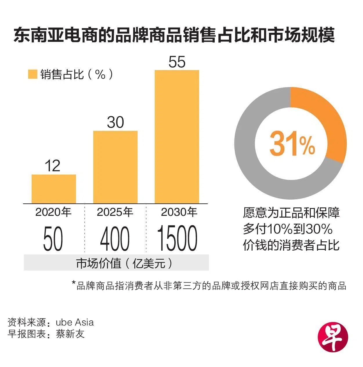 市场规模方面,东南亚电商平台上的品牌商品市场总值,在2025年已达约400亿美元(约513亿新元),预计2030年进一步增至1500亿美元。