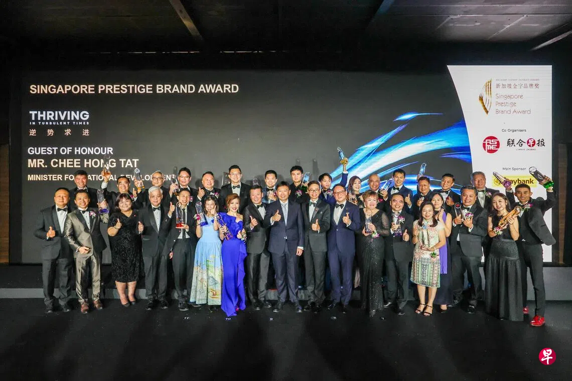 由中小企业商会和《联合早报》联办的金字品牌奖已步入第23个年头,颁奖典礼在丽思卡尔顿美年酒店(Ritz-Carlton Millenia)举行。