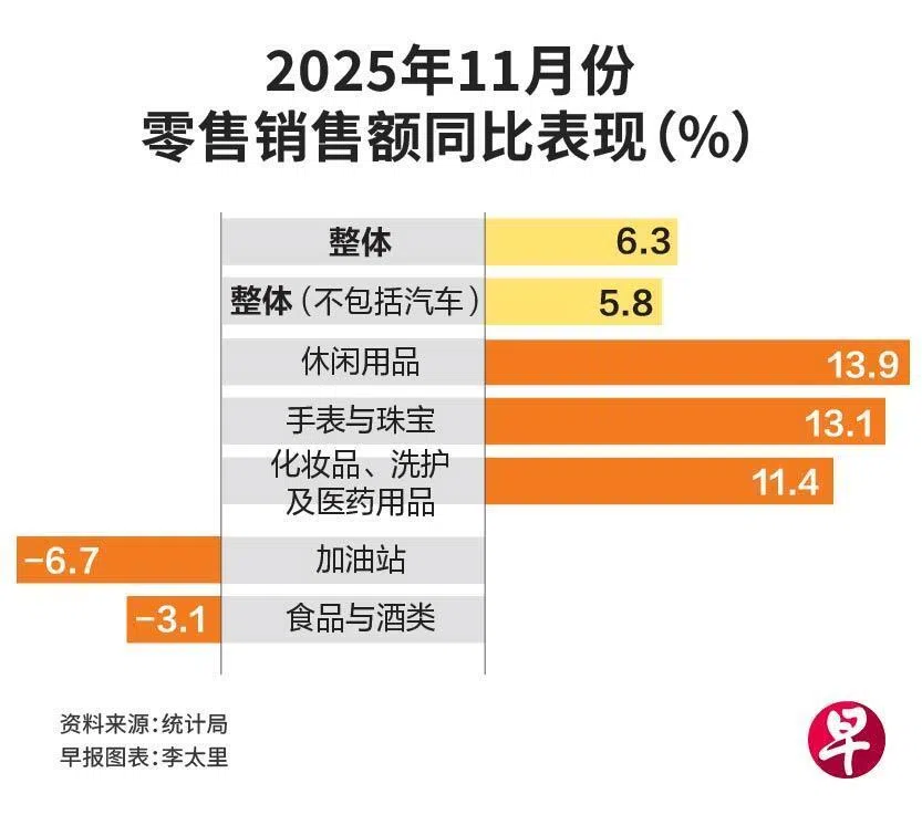 大华银行副经济师许俊杰指出,11月份零售销售额同比增幅是自2024年2月以来最高的。