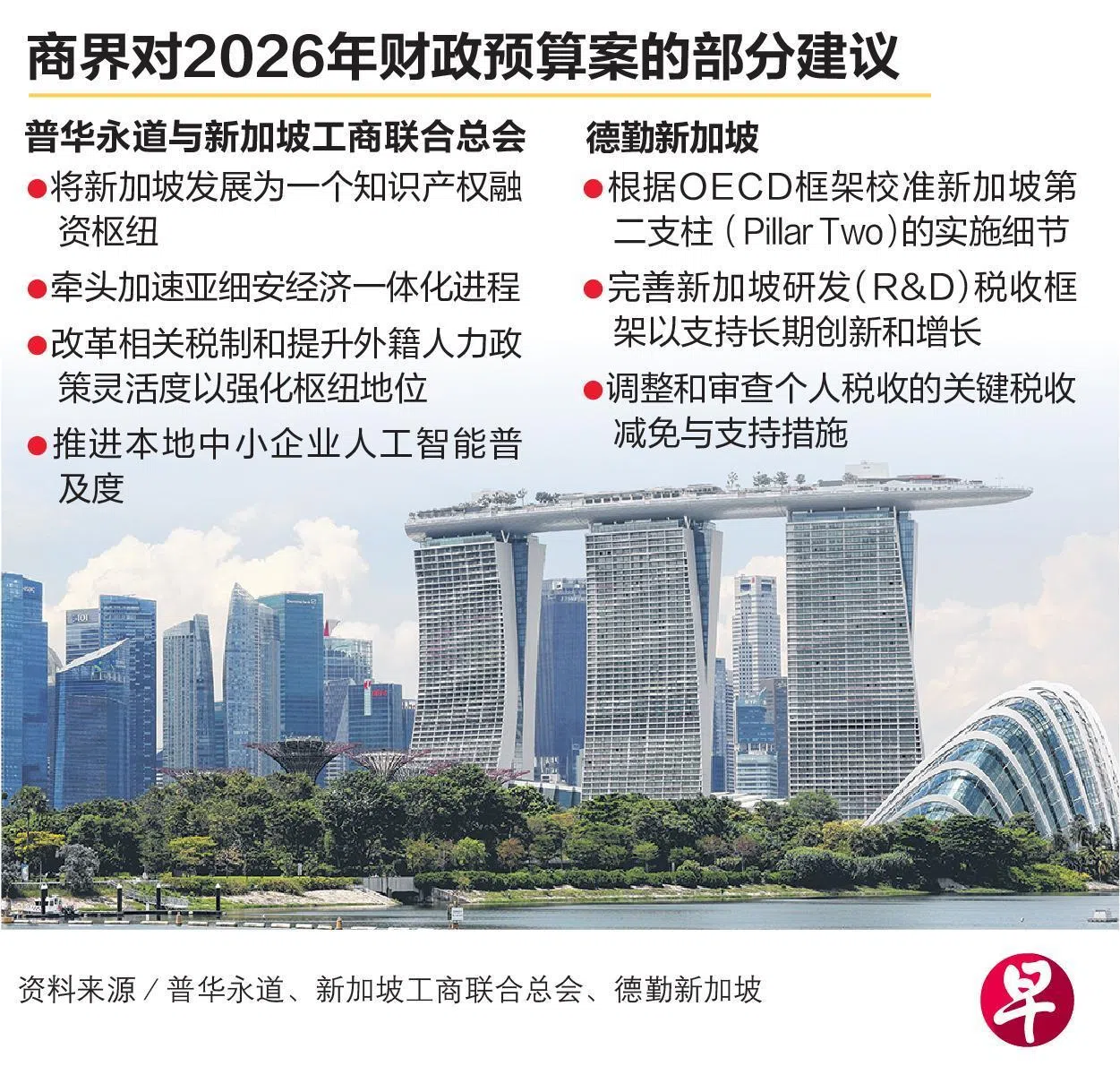 2026年财政预算案将在2月发布,普华永道新加坡(PwC Singapore)和新加坡工商联合总会(SBF)联合发布愿望清单,呼吁政府关注商界资源受限、打破增长瓶颈、强化新加坡枢纽地位和建设包容型经济等议题。