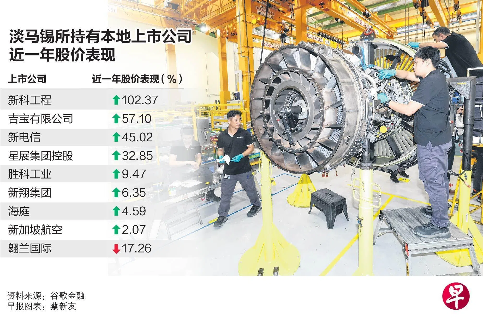 以淡马锡持股的上市企业为例,新科工程(ST Engineering)近一年股价大涨102.37%;吉宝有限公司(Keppel)和新电信(Singtel),也分别取得57.10%和45.02%的涨幅。