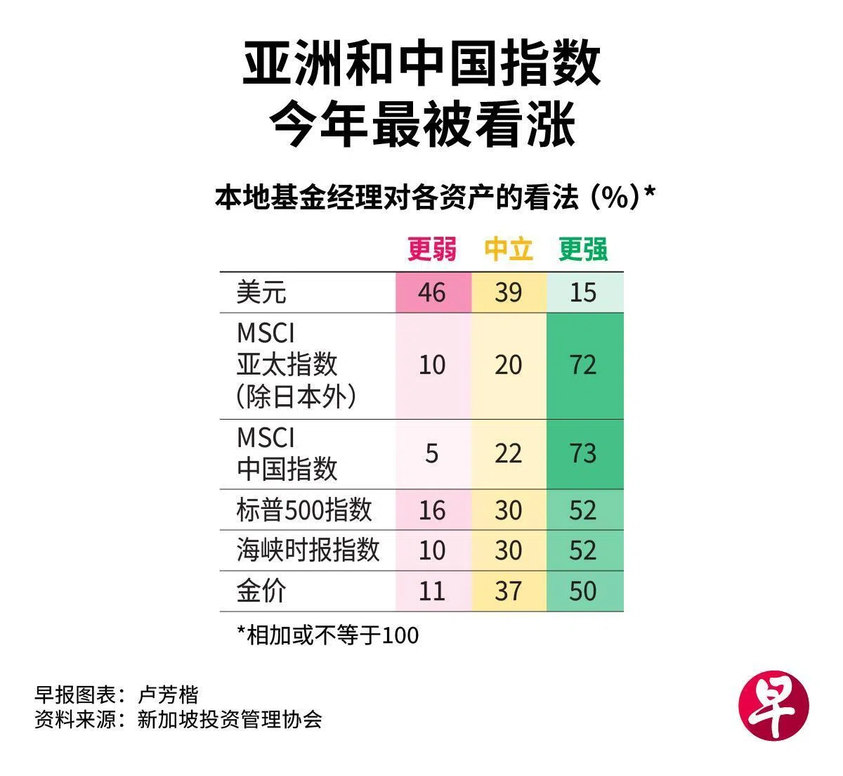 新加坡投资管理协会(IMAS)星期二(1月20日)发布的《2026年投资经理展望调查报告》显示,大部分本地基金经理看涨亚洲股票。