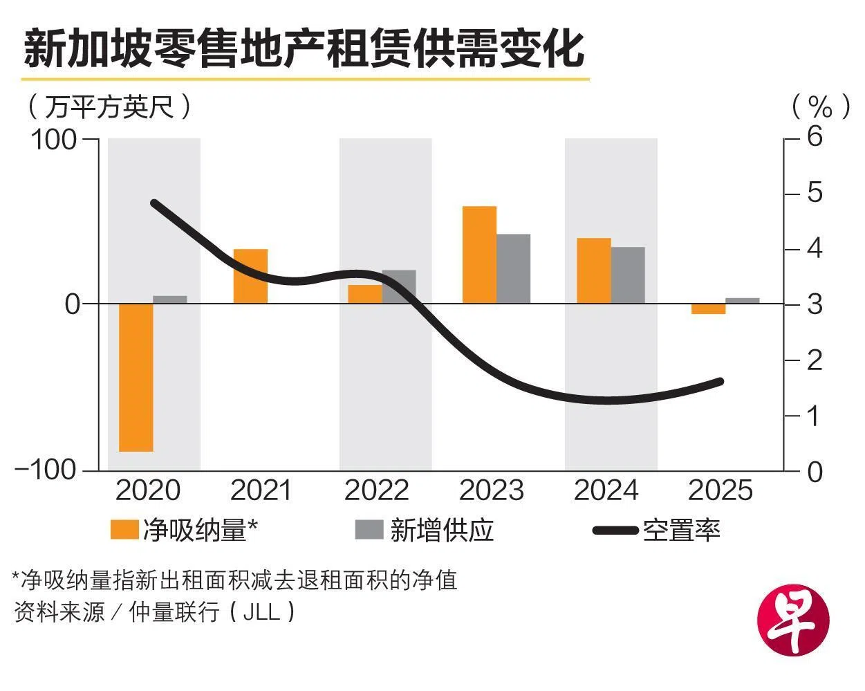 展望2026年,仲量联行预计,运营成本持续高企,以及消费者信心下降将影响企业生存能力,导致更多零售店铺倒闭并推高空置率。与此同时,外部经济前景不明朗,预料继续抑制租金增长。