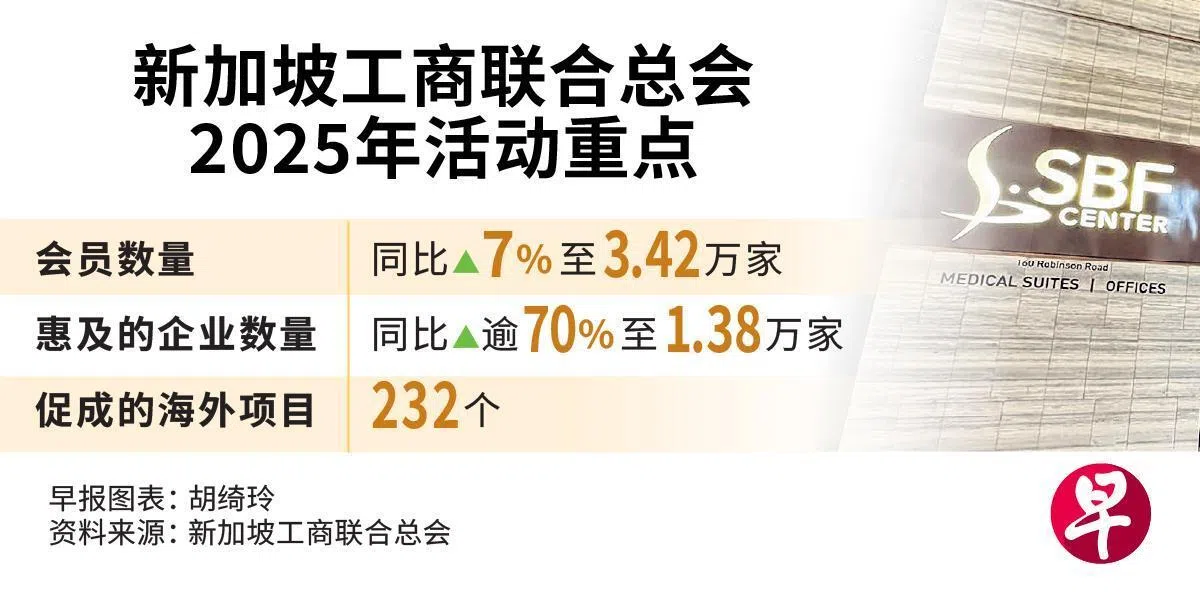 新加坡工商联合总会(SBF)去年通过六大行动议程,使超过1万3800家本地公司受益,同比增长逾70%。同期,商会会员数量也增加7%至3万4200家企业。