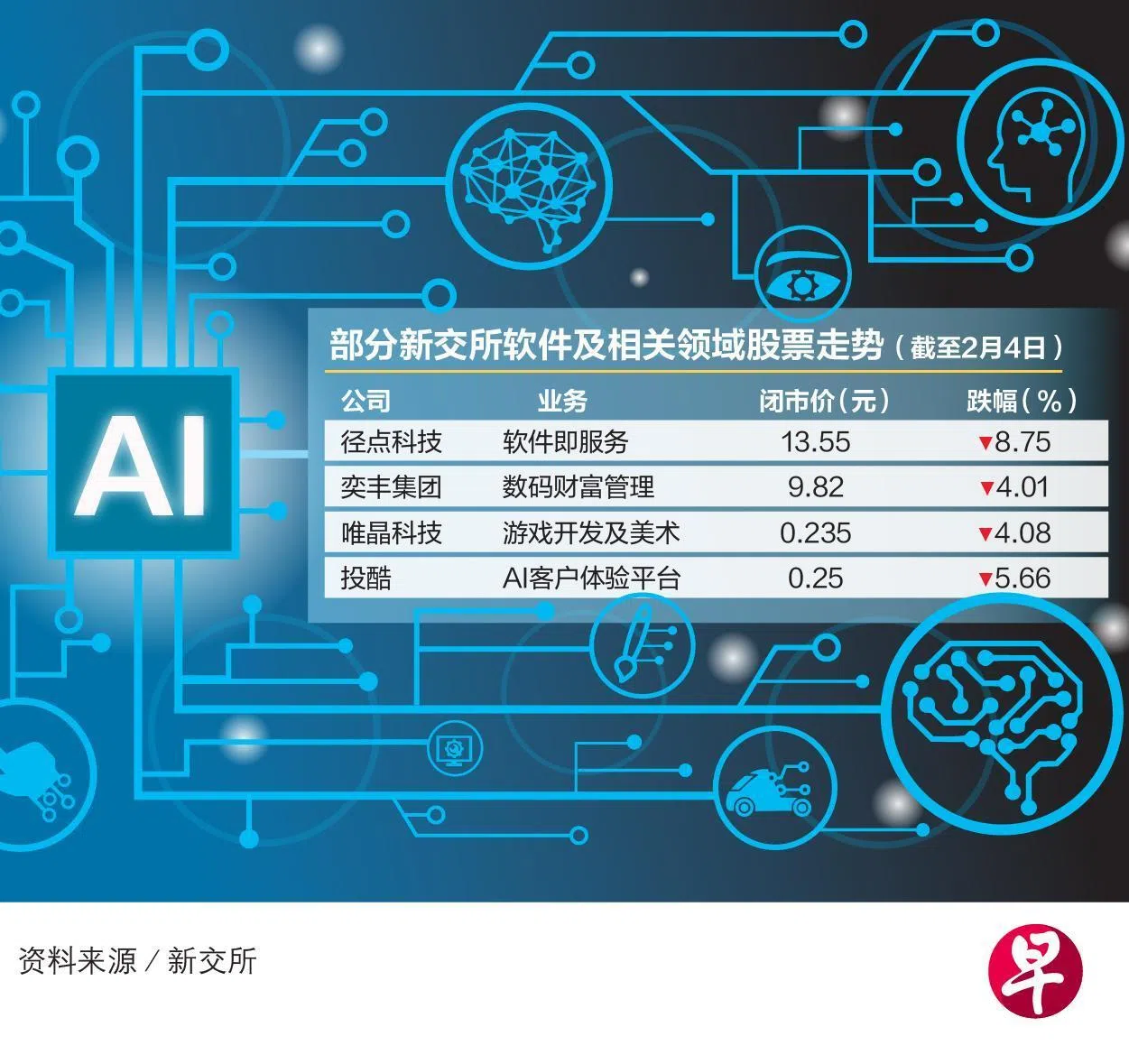 随着市场对人工智能可能颠覆软件商业模式的担忧加深,华尔街对软件股的谨慎情绪近期急剧升温。这种紧张情绪也影响本地股市,多只新加坡交易所挂牌的软件及相关领域股大跌。