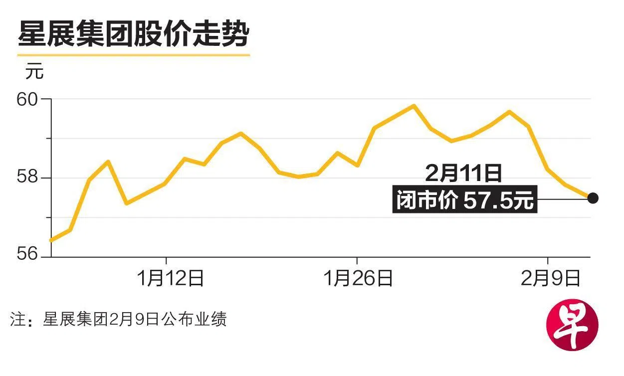 星展集团上星期五(6日)的股价收于59.3元,星期一闭市跌至58.19元,星期三(11日)闭市进一步跌至57.5元,比前一个交易日跌0.52%。