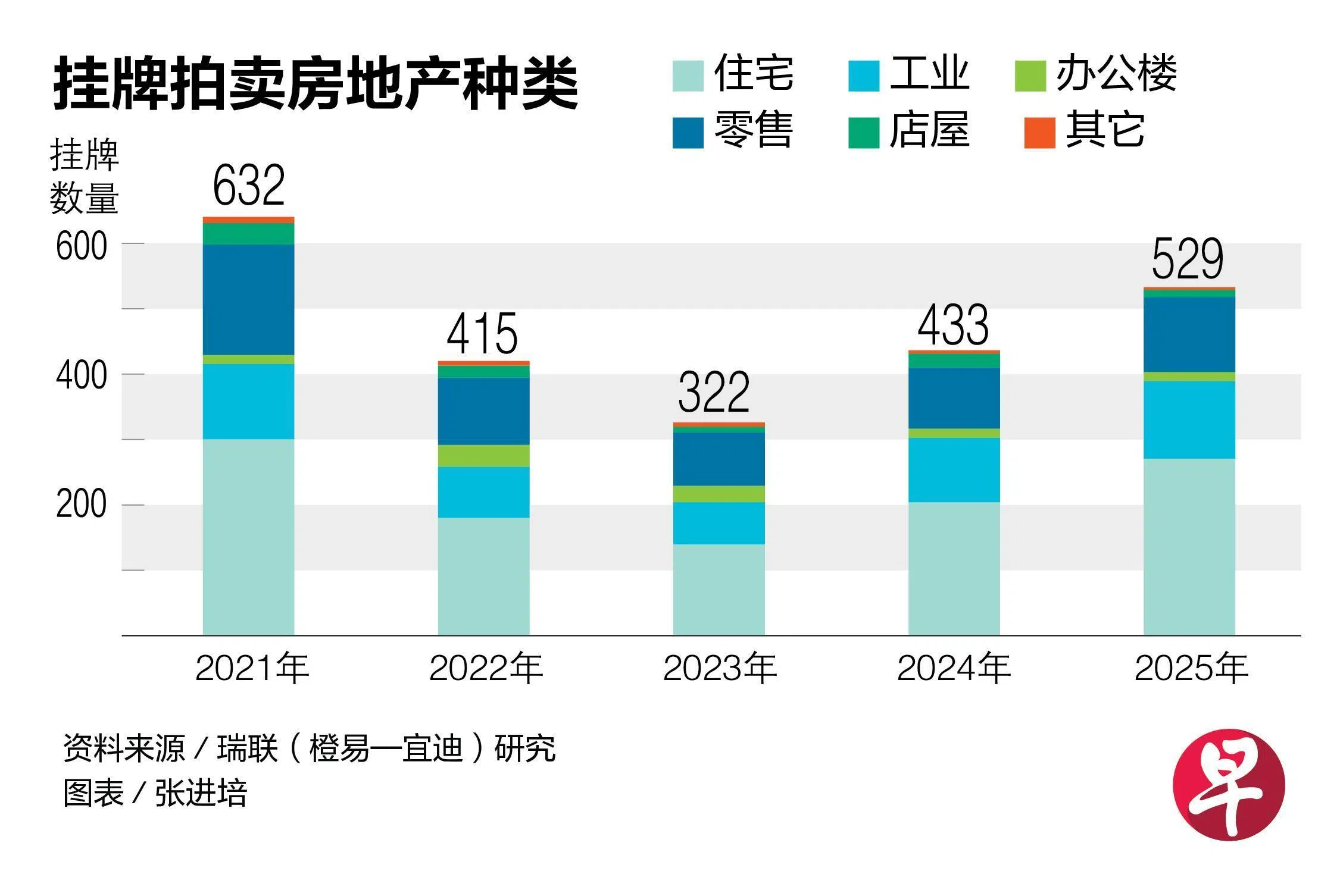 根据瑞联集团旗下宜迪产业咨询公司(ETC)的数据显示,去年本地拍卖房地产的总数是2021年来最多,比2024年的433个多了22.2%。其中,抵押逼售(mortgagee sale)的房地产占了总数的62.9%,共333个房地产,而业主求售(owner sale)则从2024年的236个减少至153个,占总拍卖数量近29%。
